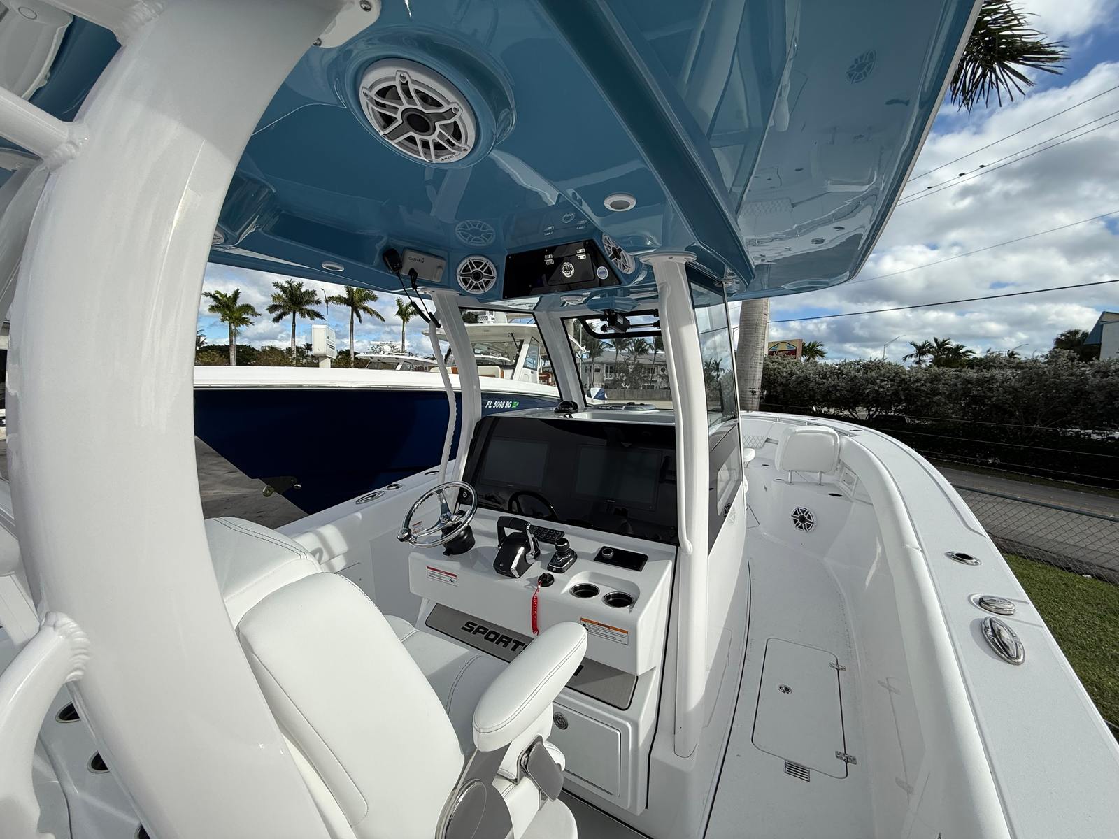 The Sportsman Heritage 321 is packed with premium features that elevate your boating experience. The hull and bottom are finished in Harbor Haze Blue, giving the boat a distinctive and elegant appearance. The fiberglass console, complete with an FG liner and cooler seat, offers both durability and comfort, while the fiberglass hard top with LED lighting provides shade and illumination for day and night excursions. The hardtop underside is also finished in Harbor Haze Blue, creating a cohesive and stylish look.White powder coating adds a touch of sophistication to the boat’s hardware, and the Serenity Sileather Icecap White upholstery ensures a luxurious and comfortable seating experience. The fiberglass leaning post features a rear-facing seat and a convenient sink, making it easy to entertain guests or prepare refreshments while on the water.Navigation and connectivity are enhanced by two Garmin 16" GPS screens with built-in Wi-Fi, allowing you to chart your course, monitor conditions, and stay connected with ease. The Edson 13 SS Comfort Grip steering wheel with PowerKnob provides precise handling and effortless maneuverability, ensuring a smooth and enjoyable ride every time you take the helm.