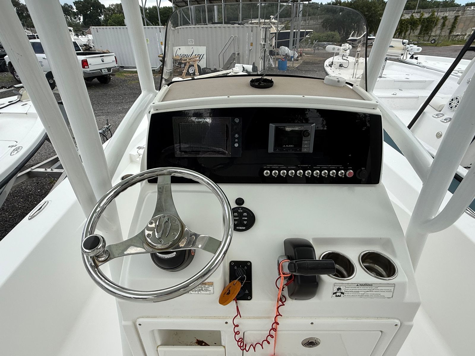 The Sportsman Masters 227 is packed with features that enhance both functionality and comfort. Its 22-foot length provides ample deck space, allowing for easy movement and plenty of room for gear, friends, and family. The layout is designed with anglers in mind, offering convenient access to all areas of the boat for casting, reeling, and relaxing. The hull design ensures stability in various water conditions, giving you peace of mind whether you are navigating choppy bays or calm rivers.This bay boat is equipped with a range of practical features that make it a standout choice among used boats for sale. The spacious deck is perfect for setting up fishing equipment or lounging in the sun, while the intuitive helm station puts all controls within easy reach. The durable construction and quality materials used throughout the boat reflect the Sportsman commitment to excellence, ensuring that your investment will stand the test of time.