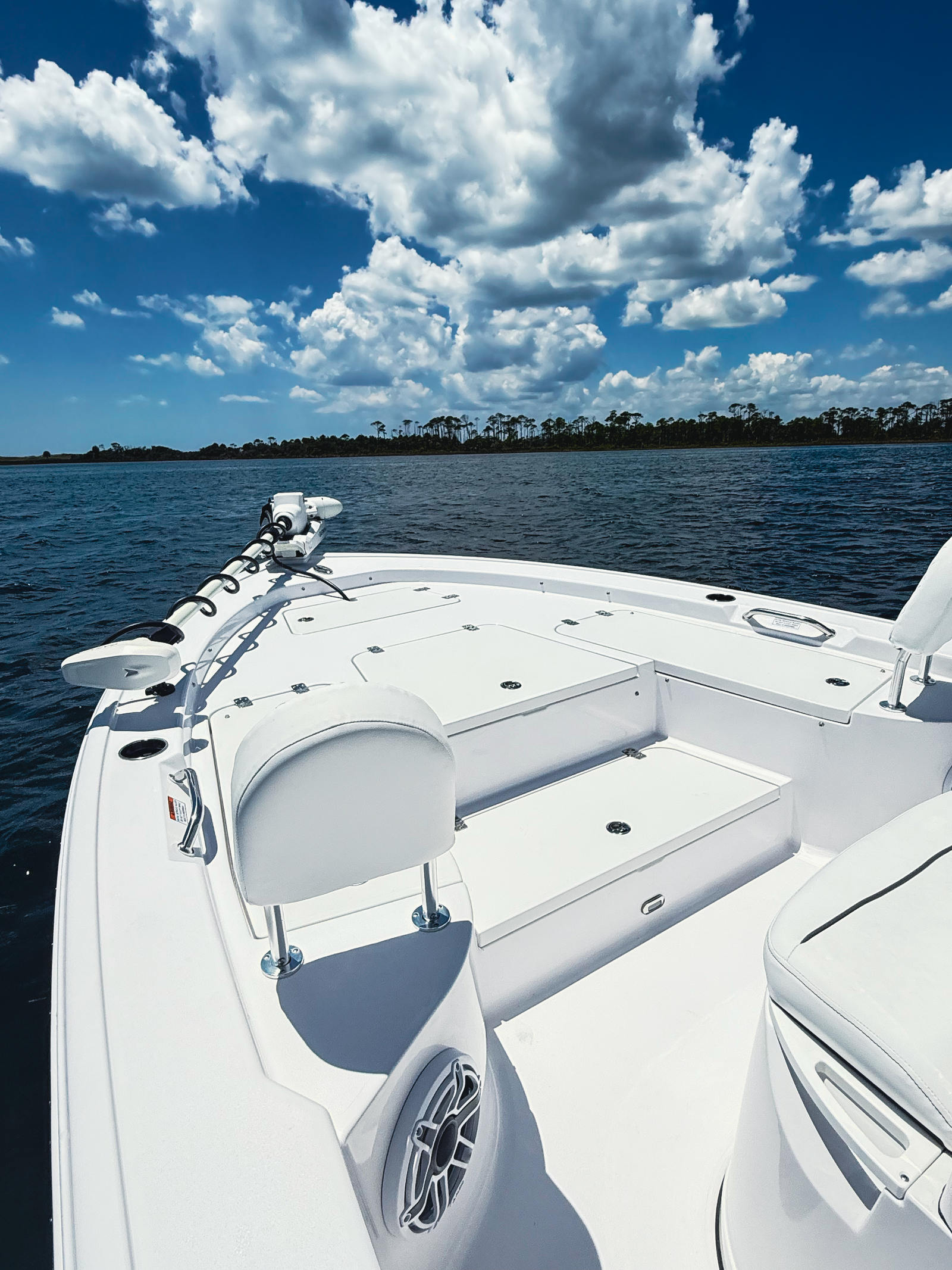 Owning a Sportsman Masters 227 bay boat opens up a world of fun and relaxation. The spacious layout provides ample room for family and friends, making it ideal for social gatherings, sunbathing, or simply enjoying a peaceful day on the water. The plush bow cushions and removable backrests create a comfortable environment for lounging, while the advanced audio system lets you set the soundtrack for your adventures.For fishing enthusiasts, the combination of the Garmin Force Kraken Trolling Motor and organized tackle storage means you can focus on the catch without worrying about clutter or equipment readiness. The on-board battery charging system ensures your trolling motor is always powered up, so you can extend your time on the water and maximize your chances of success.
