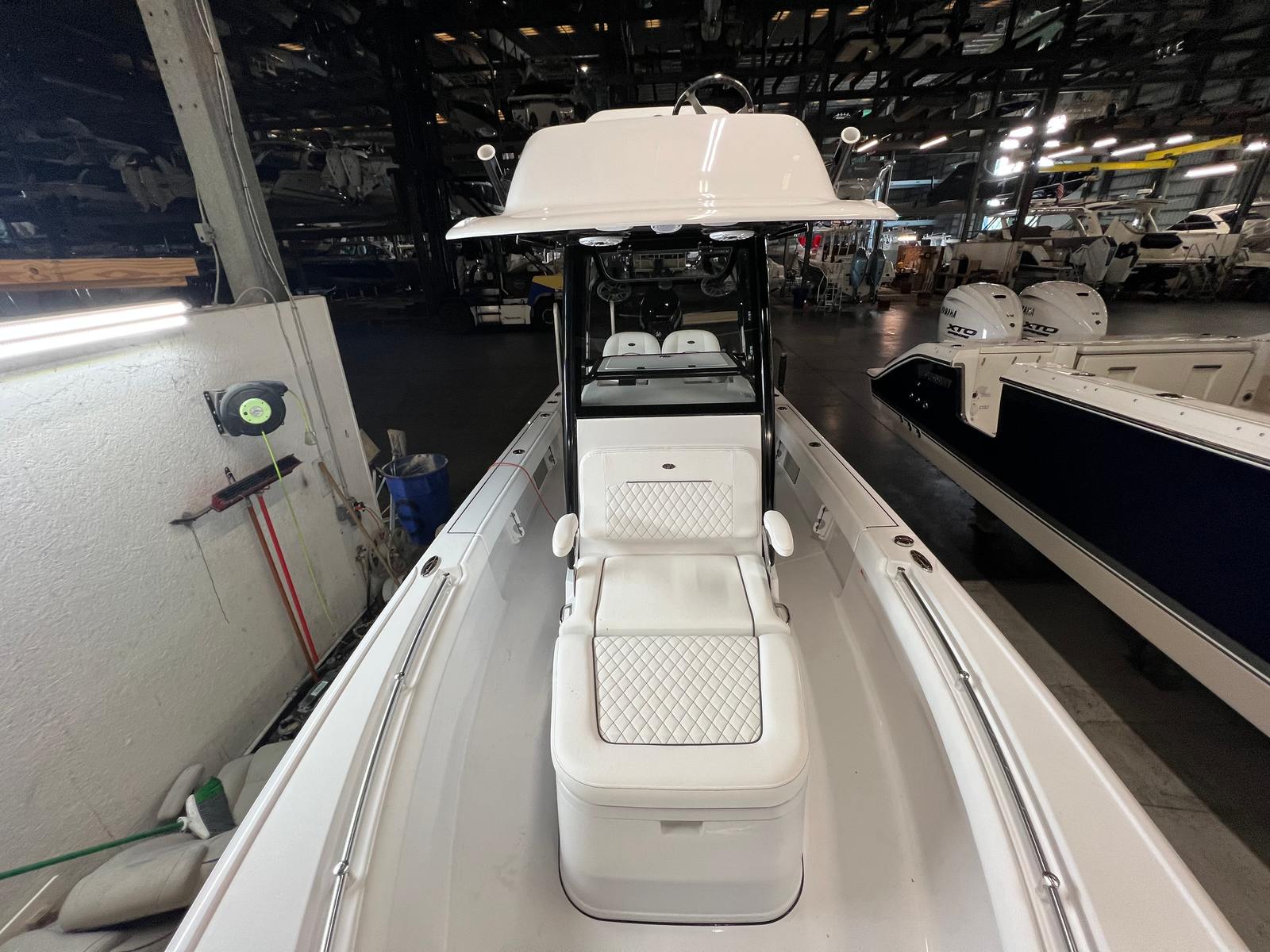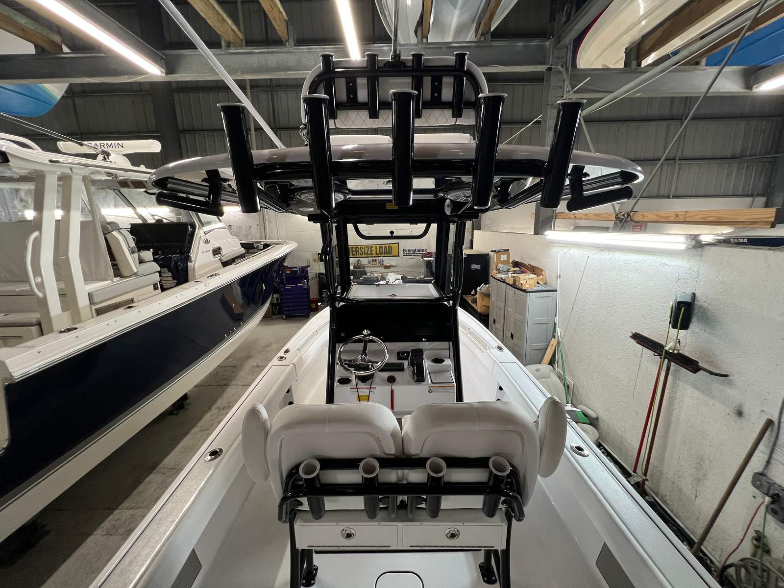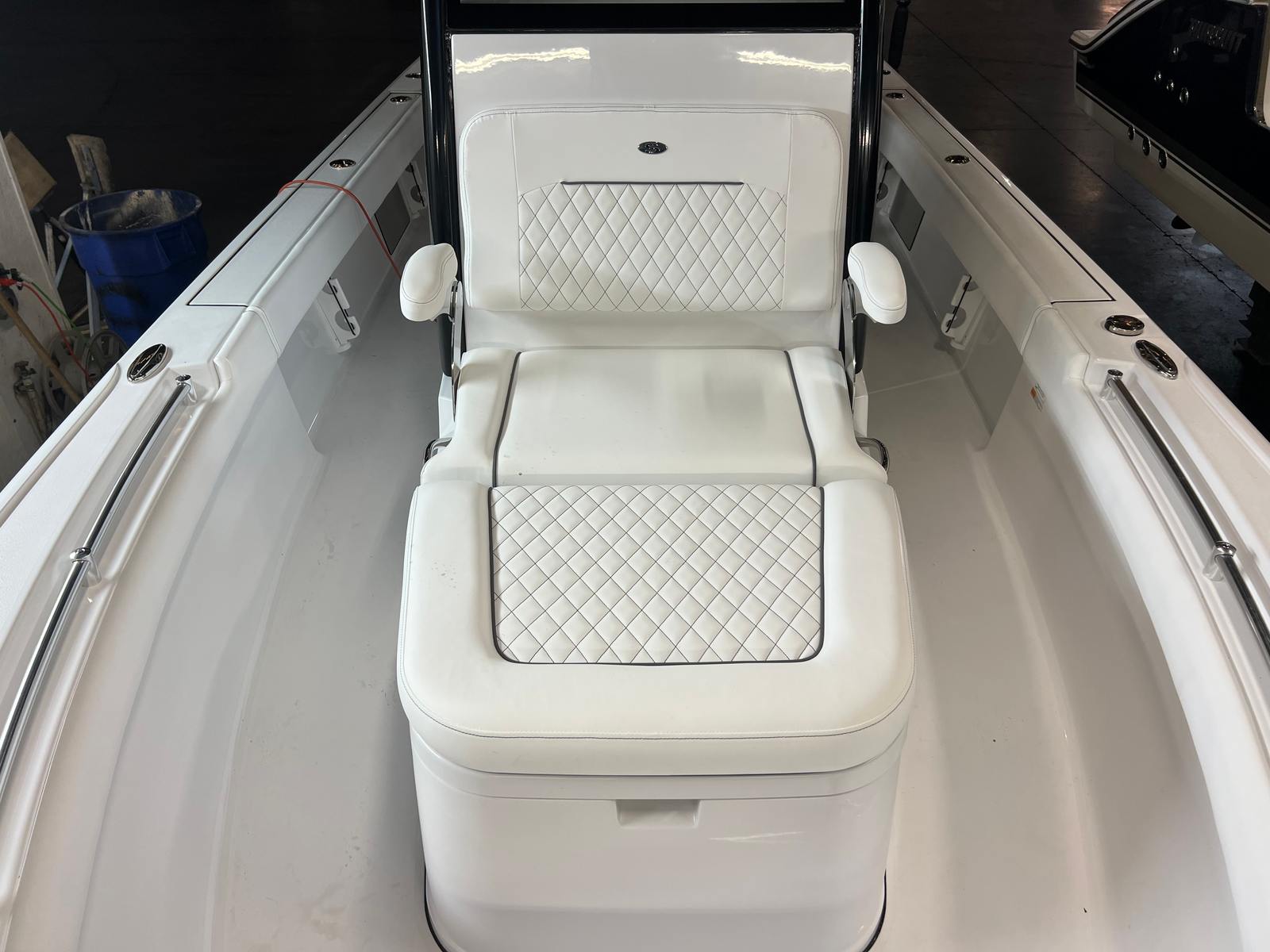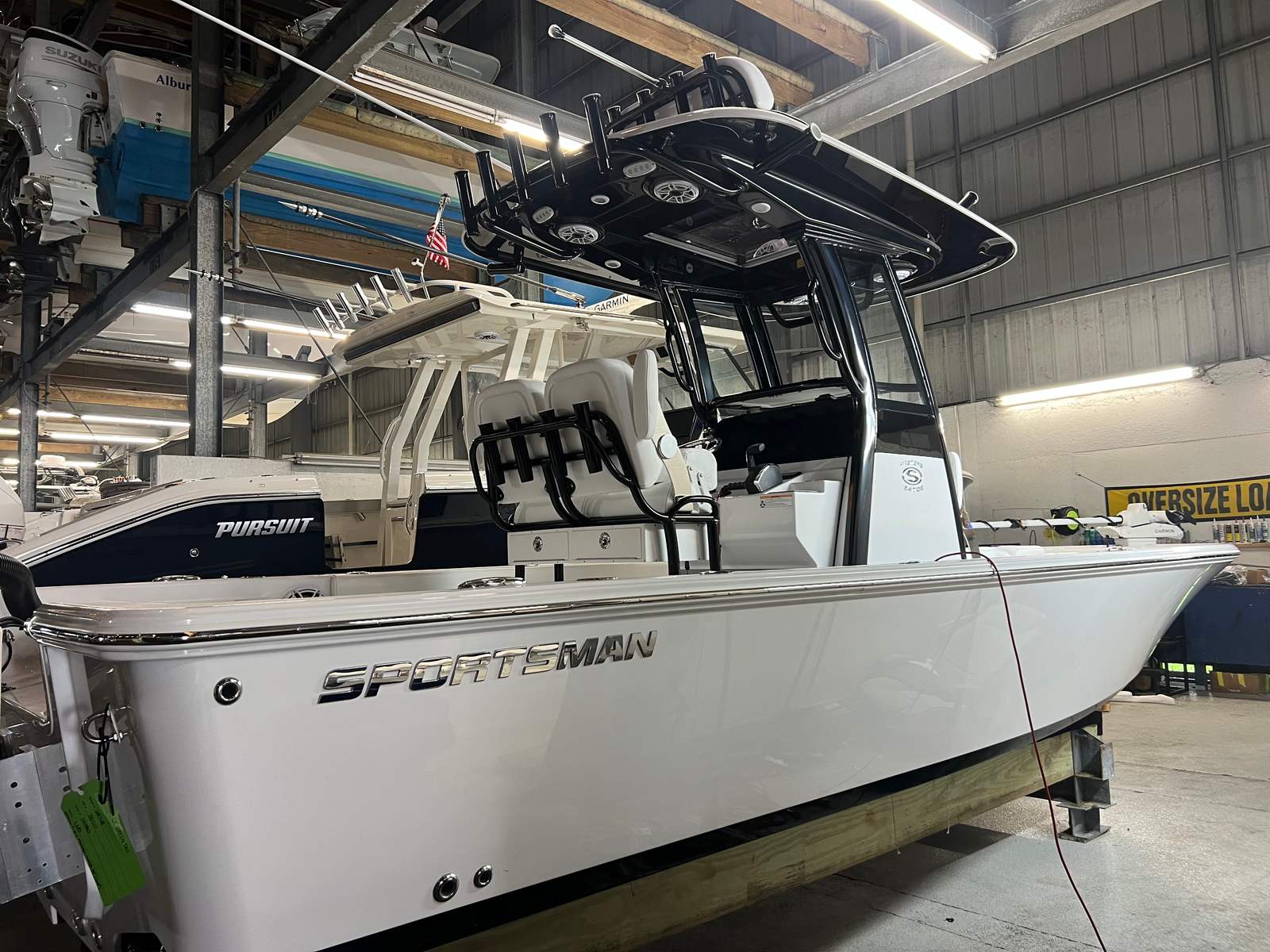 The 2026 Sportsman Masters 247 OE measures an impressive 24.33 feet in length, offering ample space for both relaxation and adventure. This bay boat is crafted with meticulous attention to detail, ensuring every inch is optimized for comfort, functionality, and style. The hull side is finished in a striking Snow White, while the hull bottom and hardtop underside feature a bold Jet Black, creating a modern and eye-catching contrast. The Icecap White upholstery adds a touch of luxury, while the black powder coating provides a sleek, cohesive look throughout the vessel. As a new boat, you can be confident that every component is in pristine condition, ready to deliver years of unforgettable memories on the water.