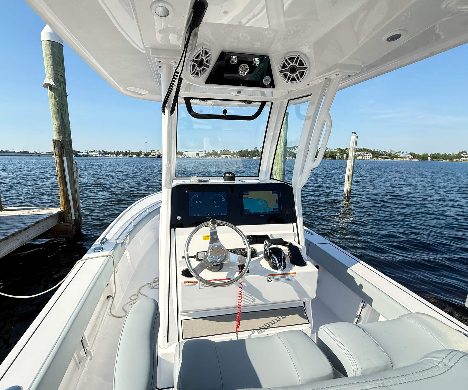 This bay boat is designed with practicality in mind, offering features that make ownership both enjoyable and hassle-free. The under leaning post tackle storage keeps your fishing equipment secure and organized, streamlining your setup for spontaneous trips. The advanced battery charger ensures your electronics and accessories are always powered, reducing downtime and increasing reliability. The efficient single-engine configuration simplifies maintenance and helps optimize fuel usage, making this bay boat boat for sale a cost-effective choice for frequent outings.Docking and maneuvering are effortless thanks to the boat’s responsive handling and well-balanced design. The slide-out track for the YETI® cooler adds convenience for storing refreshments, while the durable powder coating and premium upholstery ensure your investment stays looking great season after season. Whether you’re storing the boat at home or at a marina, its manageable size and thoughtful features make it easy to care for and enjoy.