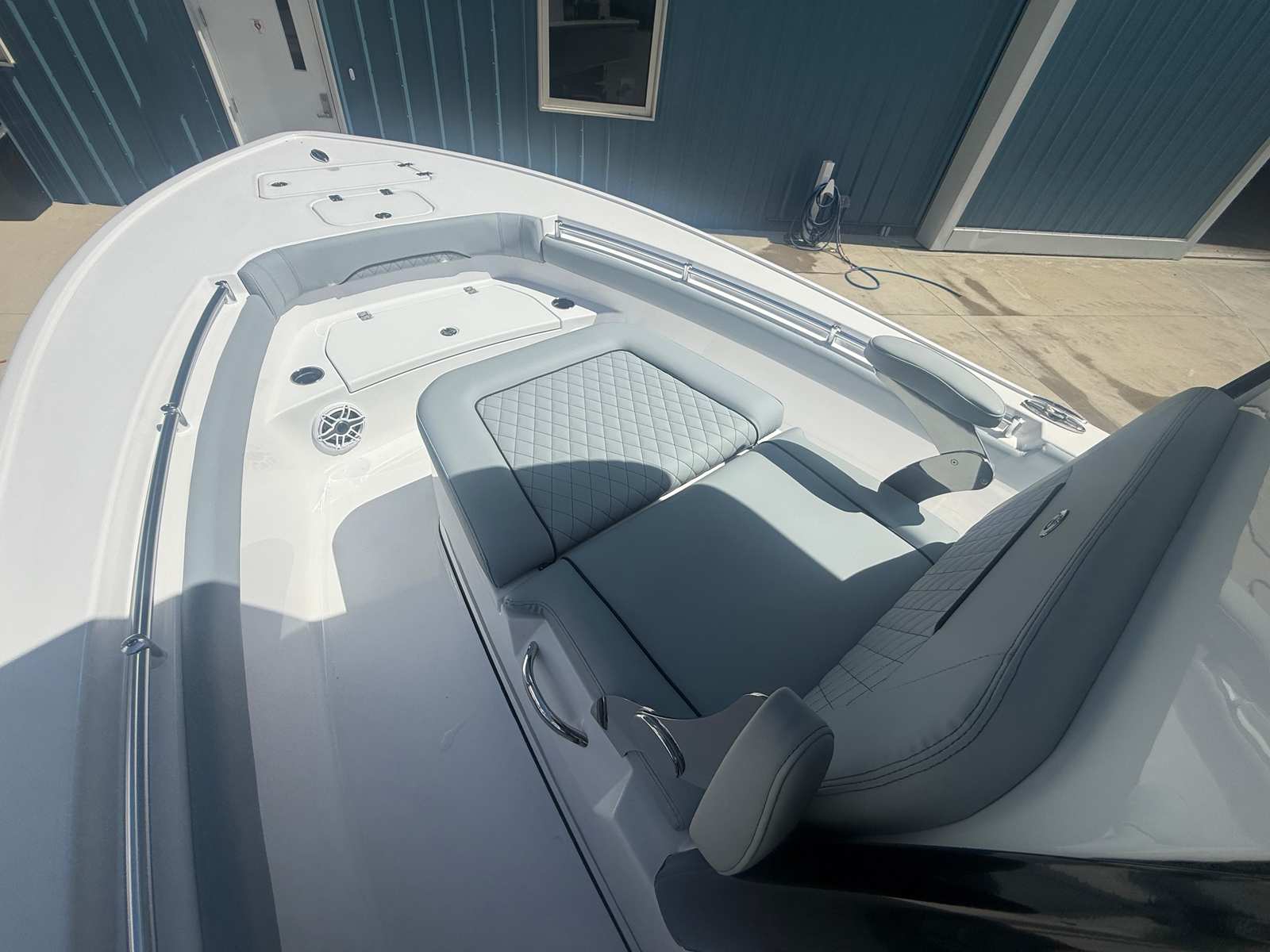 Powering the Sportsman Masters 247 OE is a single Yamaha F350XSA2 engine in white, delivering a formidable 350 horsepower. With only 1 engine hour, this boat is essentially fresh off the line, ready to provide years of reliable service. The Yamaha F350XSA2 is renowned for its smooth acceleration, fuel efficiency, and quiet operation, ensuring that every outing is both thrilling and comfortable. Whether you’re cruising to your favorite fishing spot or enjoying a leisurely ride with friends, the engine’s robust performance guarantees a responsive and enjoyable experience. The advanced engineering behind the Yamaha F350XSA2 also means lower maintenance and greater peace of mind for owners.