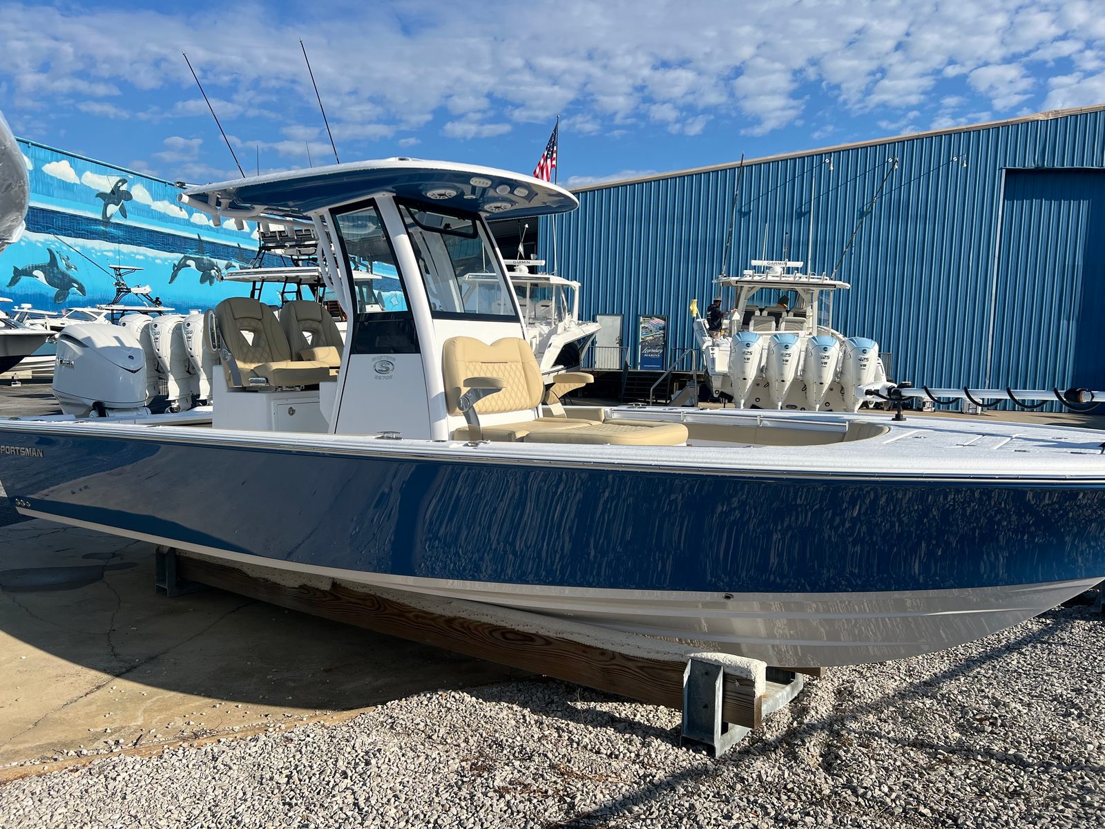 The 2026 Sportsman Masters 267 OE is a new bay boat that measures an impressive 26.58 feet in length, offering ample space for fishing, cruising, and entertaining. With its sleek lines and modern design, this Sportsman boat for sale is sure to turn heads at the marina and on the water. The hull side is finished in a striking Explorer Blue, complemented by a Snow White hull bottom and a matching Explorer Blue hardtop underside. The Coastal Beige upholstery adds a touch of elegance and comfort, while the white powder coating provides a clean, sophisticated look that is both durable and visually appealing.