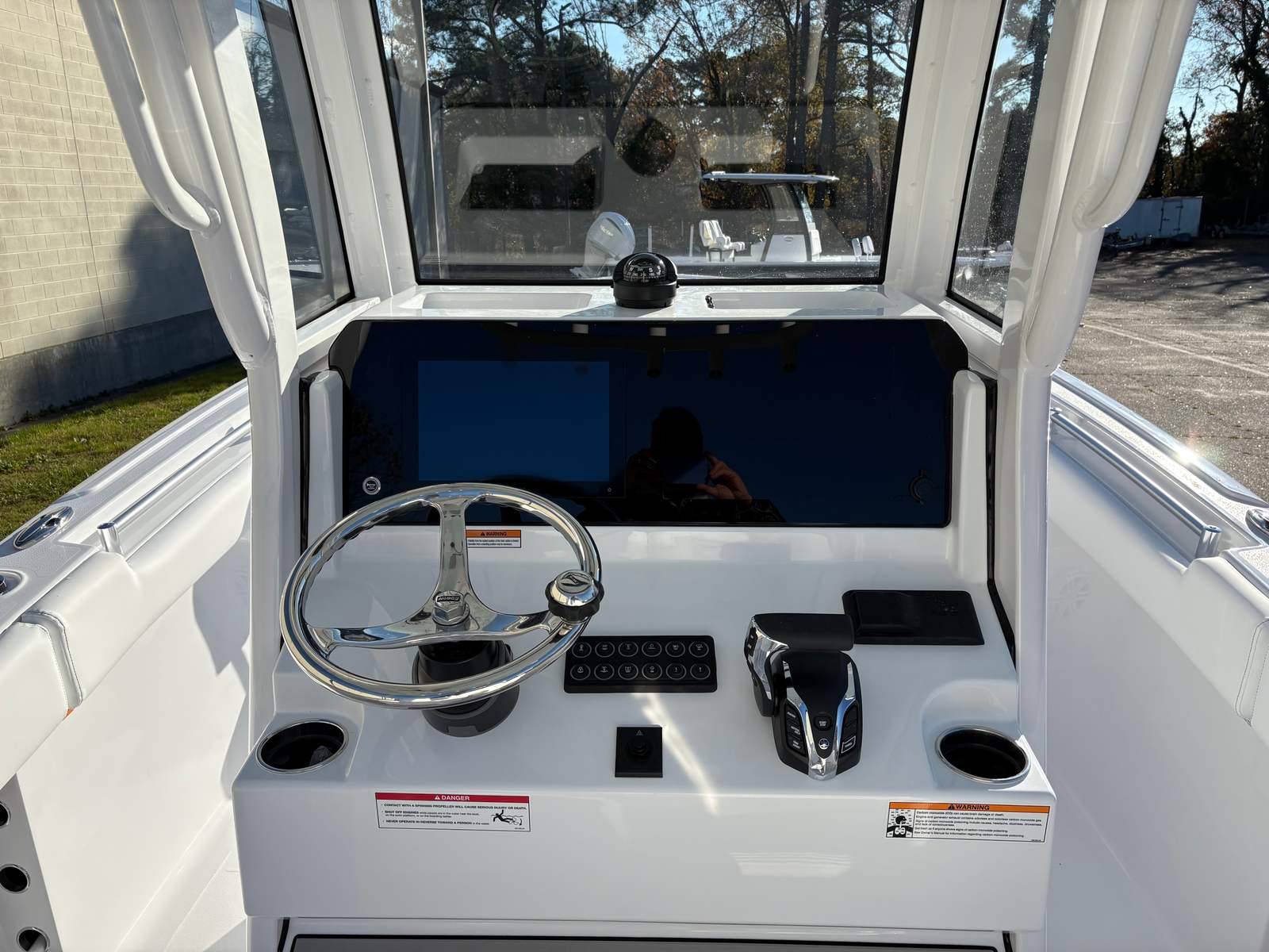 At the heart of the Sportsman Open 232 is a single Yamaha F300XSB engine, finished in a distinctive white that perfectly matches the boat’s sophisticated aesthetic. With 300 horsepower at your command, this Center Console boat delivers exhilarating speed and responsive handling, making it ideal for a variety of water activities. The Edson 13” stainless steel Comfort Grip Steering Wheel with PowerKnob provides precise control, ensuring smooth navigation even in challenging conditions. Whether you’re cruising along the coast or heading offshore, the Open 232’s performance capabilities guarantee a thrilling and reliable ride.