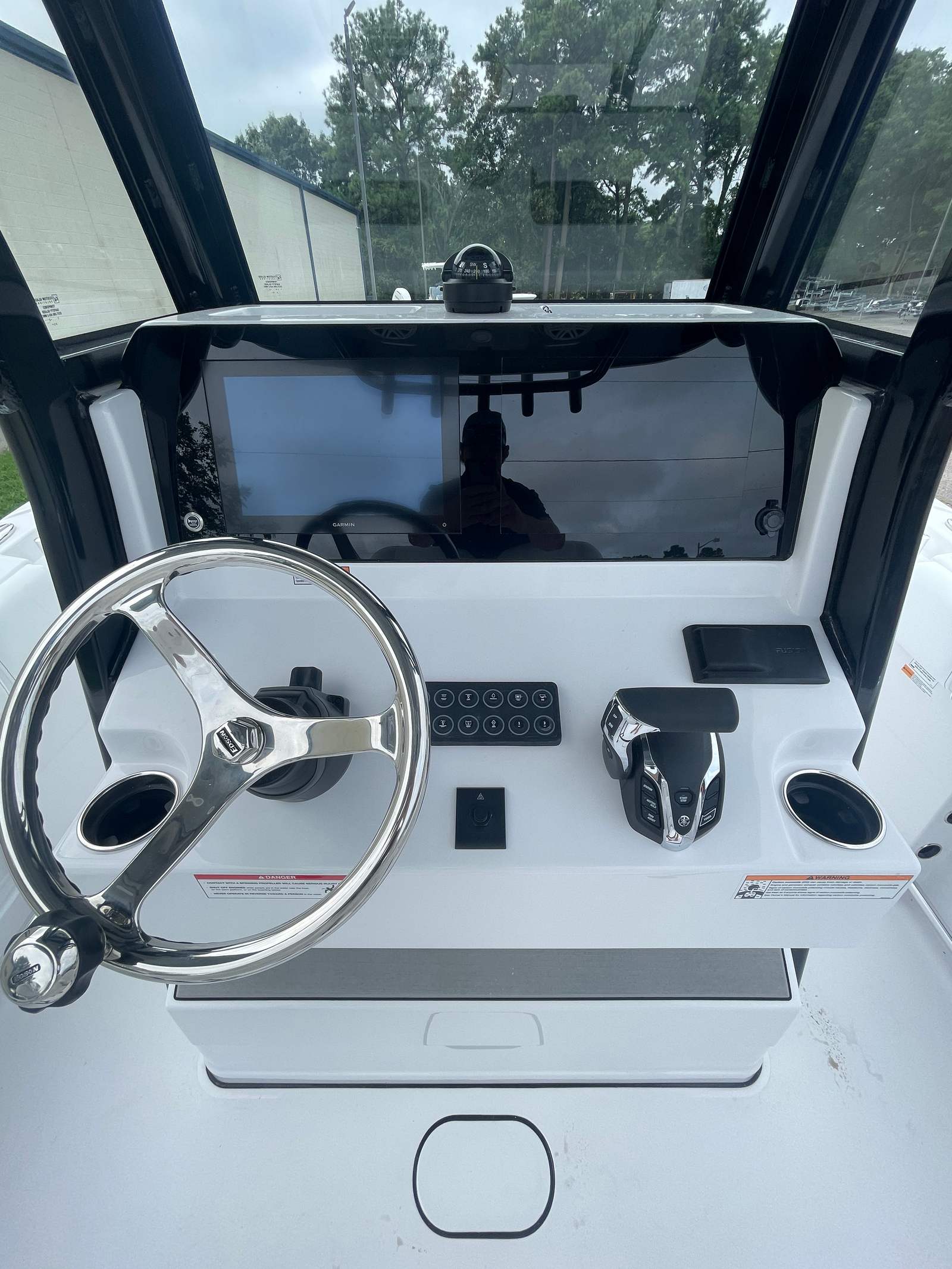 Powering the Sportsman Open 232 is a single, robust engine delivering an impressive 300 horsepower. This setup provides exhilarating acceleration and smooth cruising, making it easy to reach your favorite fishing spots or explore distant coves. The center console design enhances visibility and control, while the Edson 13” stainless steel Comfort Grip steering wheel with PowerKnob ensures precise handling and effortless maneuverability. Whether you’re navigating choppy waters or gliding across a calm lake, the Open 232 offers a responsive and enjoyable ride every time.
