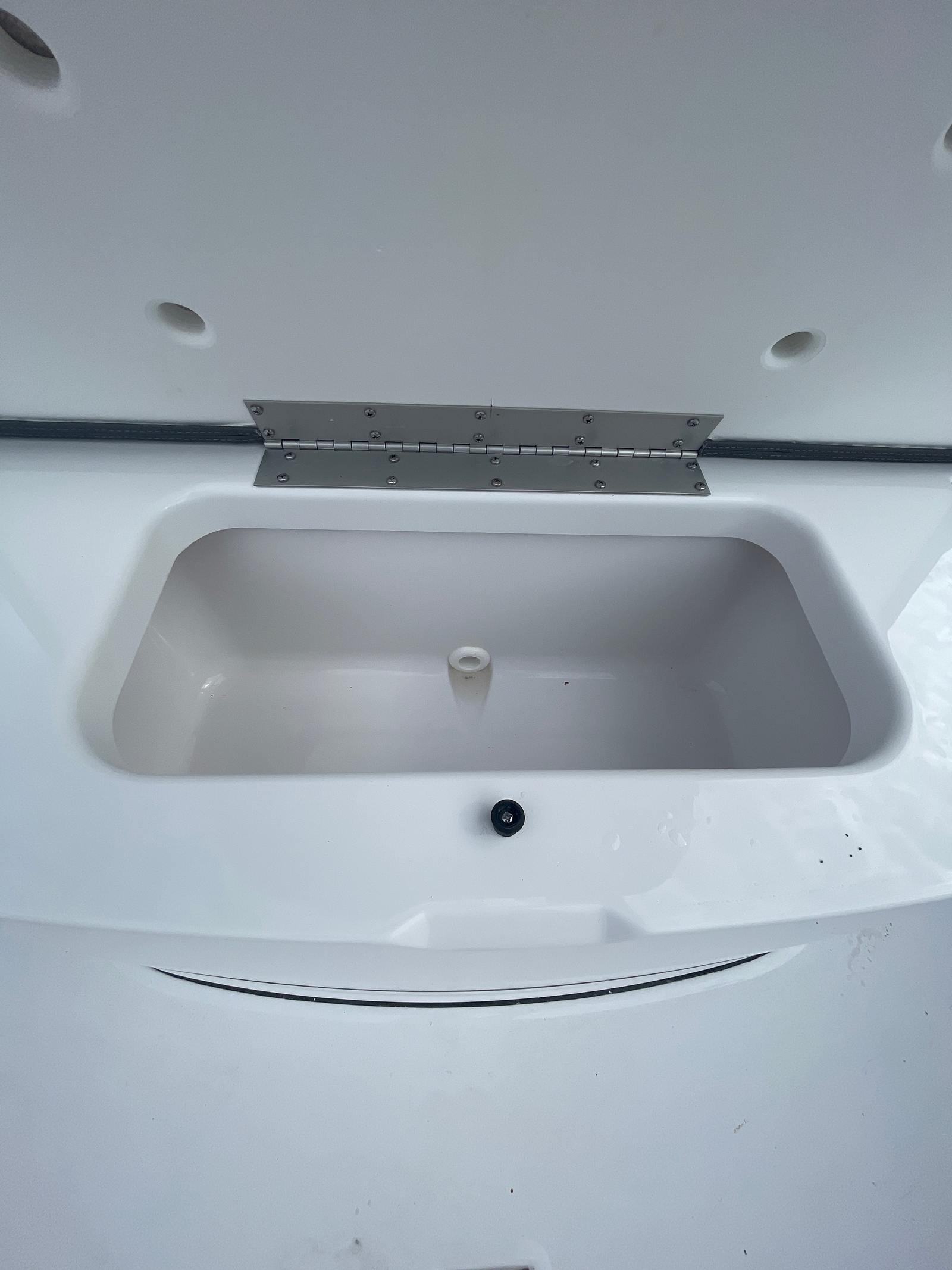 The Sportsman Open 232 is packed with premium features that elevate your boating experience. The removable bow sundeck/table with cushion transforms the front of the boat into a versatile space for sunbathing, dining, or socializing. The porcelain head with overboard discharge and pump out adds convenience for longer trips, allowing you to stay comfortable on the water all day. The ProMariner ProTournament Elite 3 battery charger (2-bank) ensures your boat’s electrical systems remain powered and reliable, so you can focus on fun without worry. The striking Shadow Gray hull color, Icecap White upholstery, and black powder coating not only enhance the boat’s aesthetics but also reflect its commitment to quality and style.