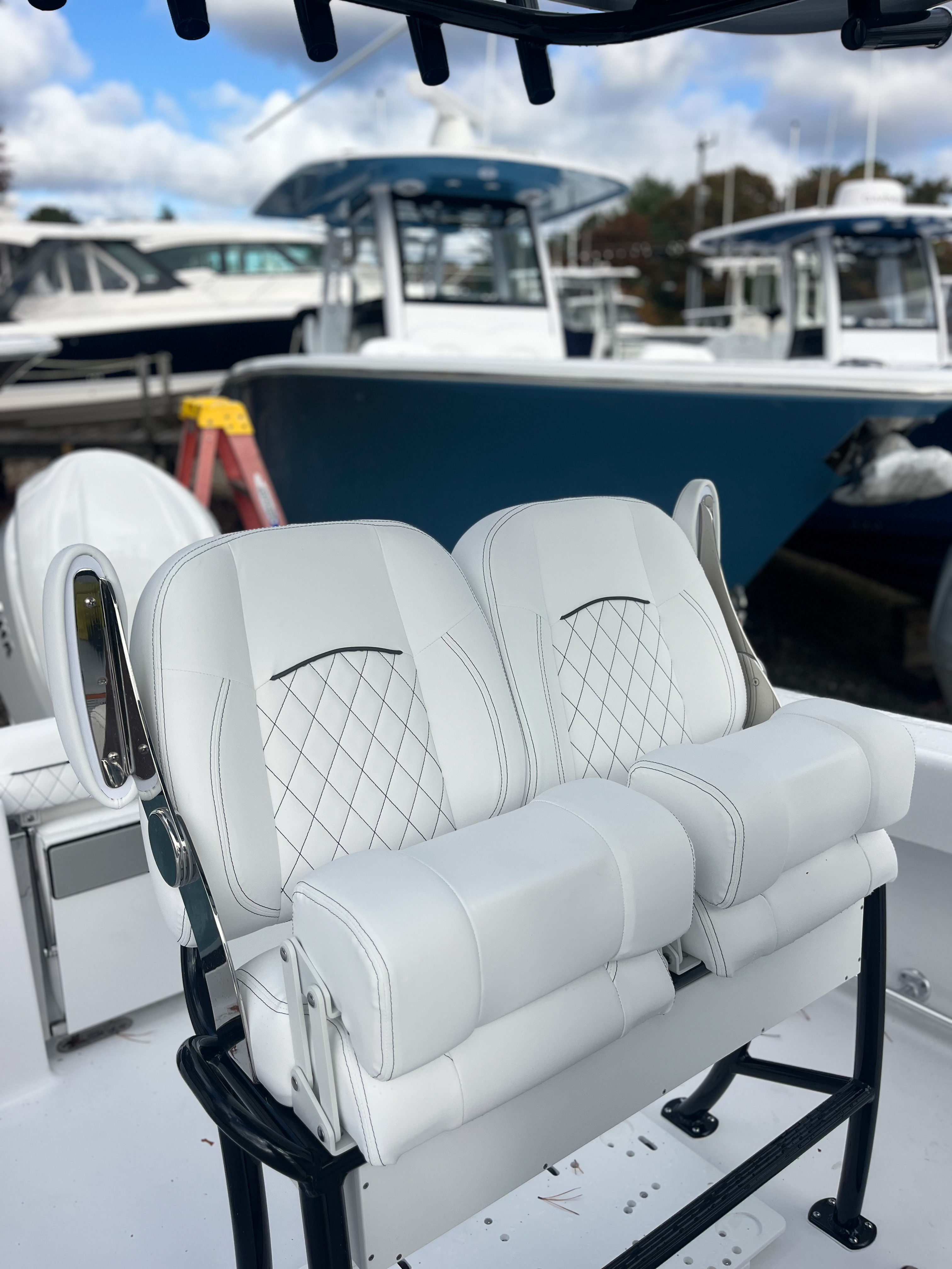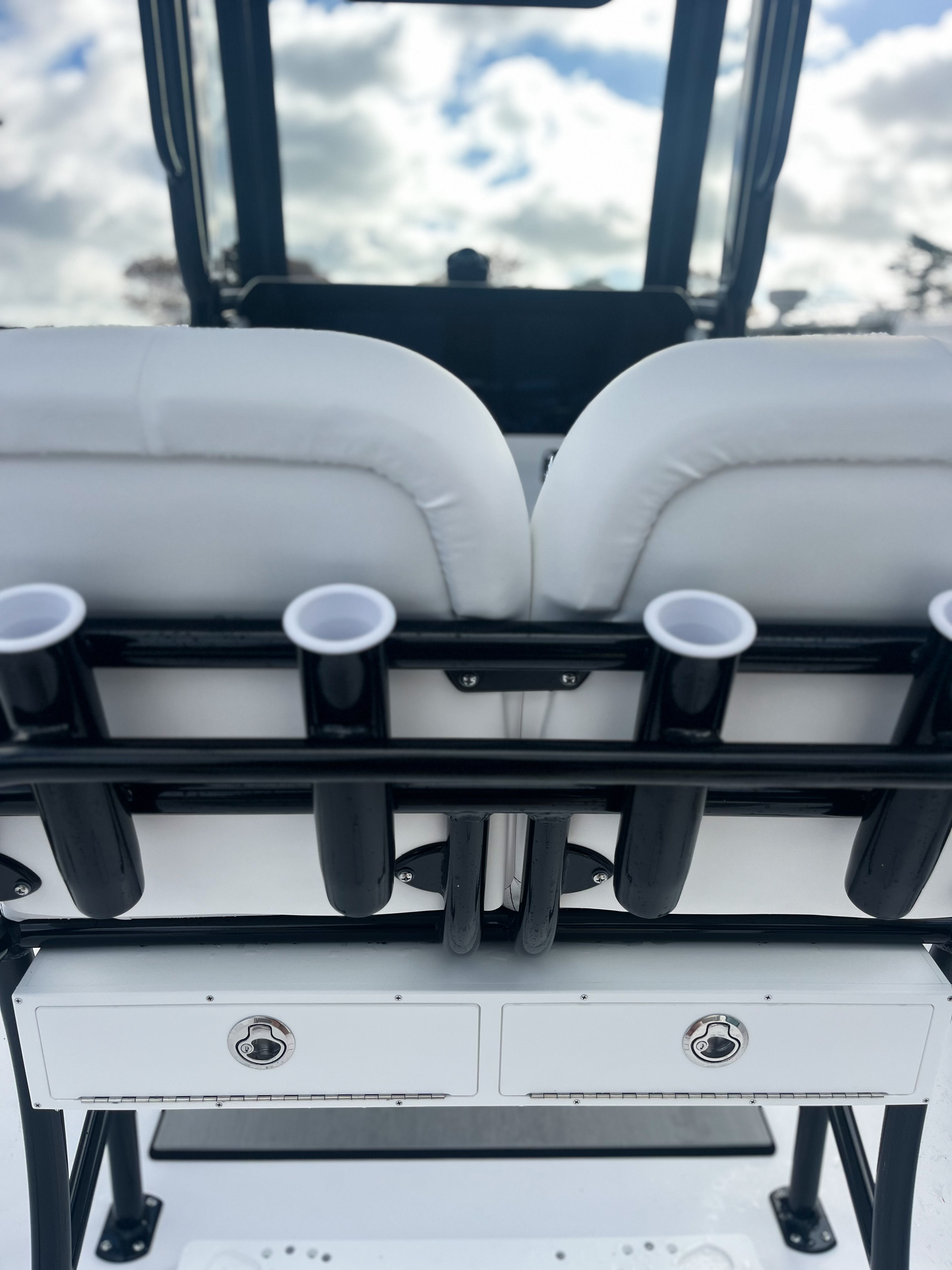 The 2026 Sportsman 232 Open is loaded with premium features designed to enhance your time on the water. The removable bow sundeck and table with cushion offer a versatile space for sunbathing, socializing, or enjoying a meal with friends and family. The captain’s orientation ensures that the helm is ergonomically designed for maximum comfort and efficiency, allowing you to focus on the journey ahead. Navigation and fish-finding are made easy with the dual Garmin GPSMAP 1243xsv 12” screens, providing clear, real-time data at your fingertips. Anglers will appreciate the two gunwale rod holders, which keep your gear organized and within reach. The porcelain head with overboard discharge and pump out adds a level of convenience and comfort, making longer trips more enjoyable for everyone on board. Aesthetically, the black powder coating on the hardware and rails not only adds a modern touch but also enhances durability against the harsh marine environment. Every detail, from the hull’s color scheme to the high-quality finishes, reflects Sportsman’s commitment to craftsmanship and innovation.