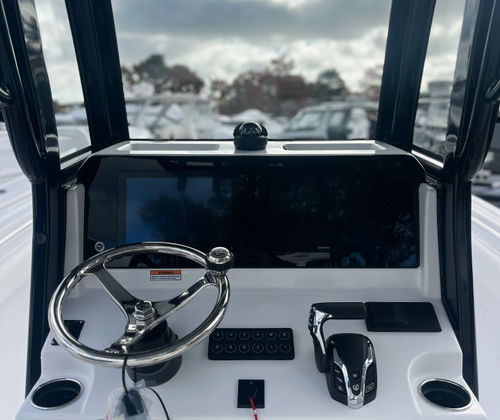 At the heart of the Sportsman 232 Open is a powerful single engine delivering an impressive 300 horsepower. This setup ensures smooth acceleration, responsive handling, and the ability to tackle a range of water conditions with confidence. Whether you are cruising along the coastline, heading offshore for a day of fishing, or simply enjoying a sunset ride, the engine’s performance guarantees a thrilling and reliable boating experience. The advanced steering system, featuring the Edson 13” stainless steel comfort grip steering wheel with PowerKnob, provides precise control and effortless maneuverability, making docking and navigating tight spaces a breeze.