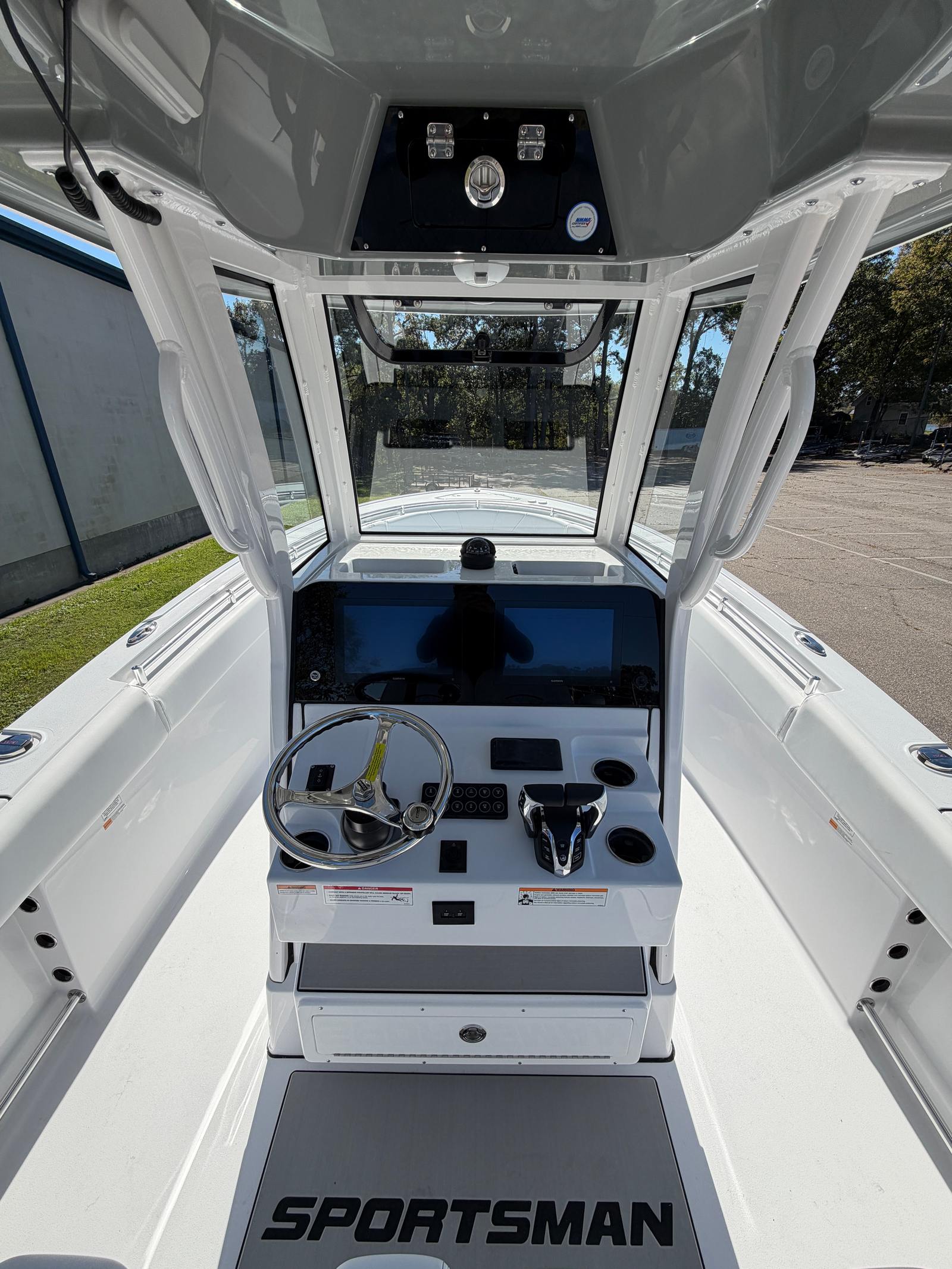 The 2026 Sportsman Open 252 is a brand-new Center Console boat that measures an impressive 25.25 feet in length. This size strikes the perfect balance between spaciousness and maneuverability, making it ideal for a wide range of boating activities. The Shadow Gray hull color, paired with a matching hard top underside, gives this boat a sophisticated and modern look that is sure to impress. Every detail of the Open 252 has been thoughtfully crafted to enhance your time on the water, from its premium upholstery to its innovative seating arrangements.