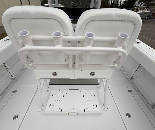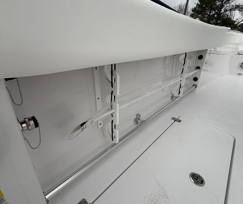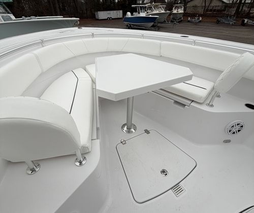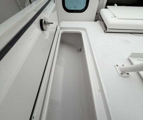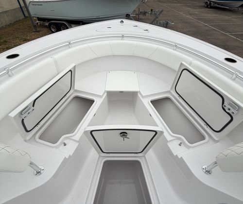 The Sportsman Open 252 is as practical as it is enjoyable. Its 25.25-foot length strikes the perfect balance between spaciousness and manageability, making docking and storage straightforward. The twin Yamaha engines deliver not only power but also fuel efficiency, ensuring you get the most out of every trip. The hard top with LED lighting extends your boating hours, providing visibility and ambiance after sunset.Storage solutions are thoughtfully integrated throughout the boat, with a console that features a fiberglass liner and a cooler seat for refreshments. The ProMariner battery charger keeps your electronics and systems powered up, reducing downtime and maintenance hassles. The porcelain head with pump out adds a level of convenience that is often missing in boats of this size, making the Open 252 ideal for longer journeys or overnight stays.