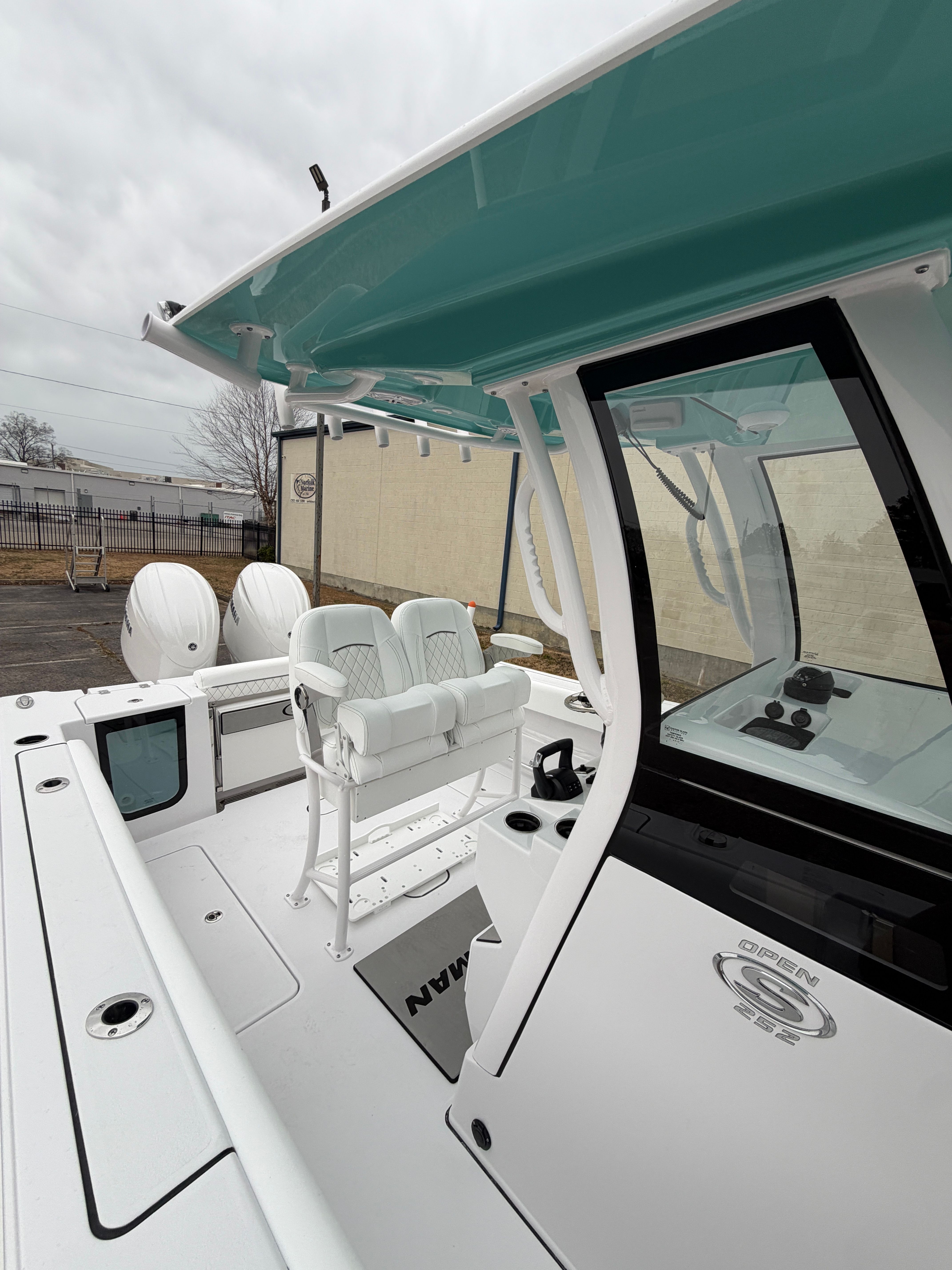 Power and reliability are at the heart of the Sportsman Open 252. Equipped with twin Yamaha F150XSA2 engines, each delivering 150 horsepower, this center console boat offers a total of 300 horsepower for exhilarating performance. The white engines not only enhance the boat’s visual appeal but also reflect the premium quality associated with Yamaha’s renowned engineering. Whether you are accelerating to your favorite fishing spot or cruising along the coastline, the Open 252 provides smooth, responsive handling and impressive speed. The Edson 13” stainless steel comfort grip steering wheel with PowerKnob ensures precise control, making navigation effortless even in challenging conditions.