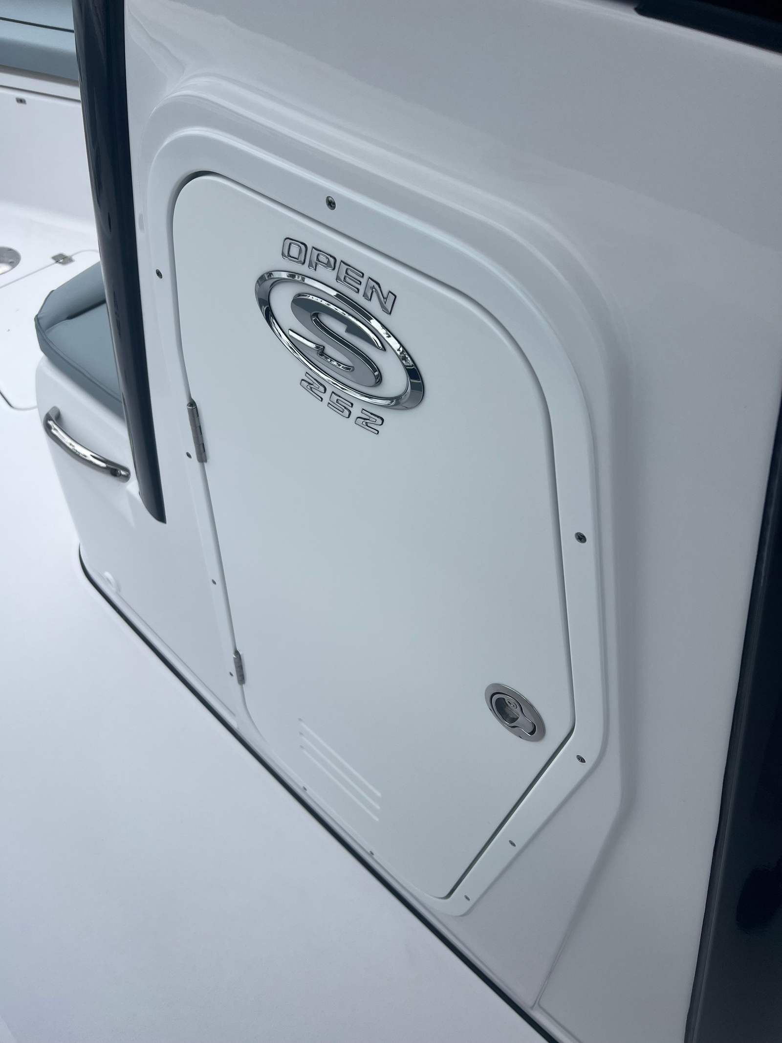 The Sportsman Open 252 is packed with premium features designed to maximize comfort, convenience, and functionality. The fiberglass console with FG liner and cooler seat offers a durable and stylish command center, while the fiberglass hard top with LED lighting ensures protection from the elements and excellent visibility during evening outings. The hardtop underside is finished in Storm Cloud Gray, perfectly matching the hull and adding a touch of elegance.The bow sundeck/table with removable cushion transforms the front of the boat into a versatile space for sunbathing, dining, or socializing. The premium dual chair leaning post with flip-up bolsters provides ergonomic support for the captain and co-captain, allowing for comfortable long-distance cruising or quick transitions during active fishing sessions. Navigation is a breeze with two Garmin 12" GPS screens featuring built-in Wi-Fi, offering state-of-the-art chart plotting, fish finding, and connectivity for all your marine electronics.