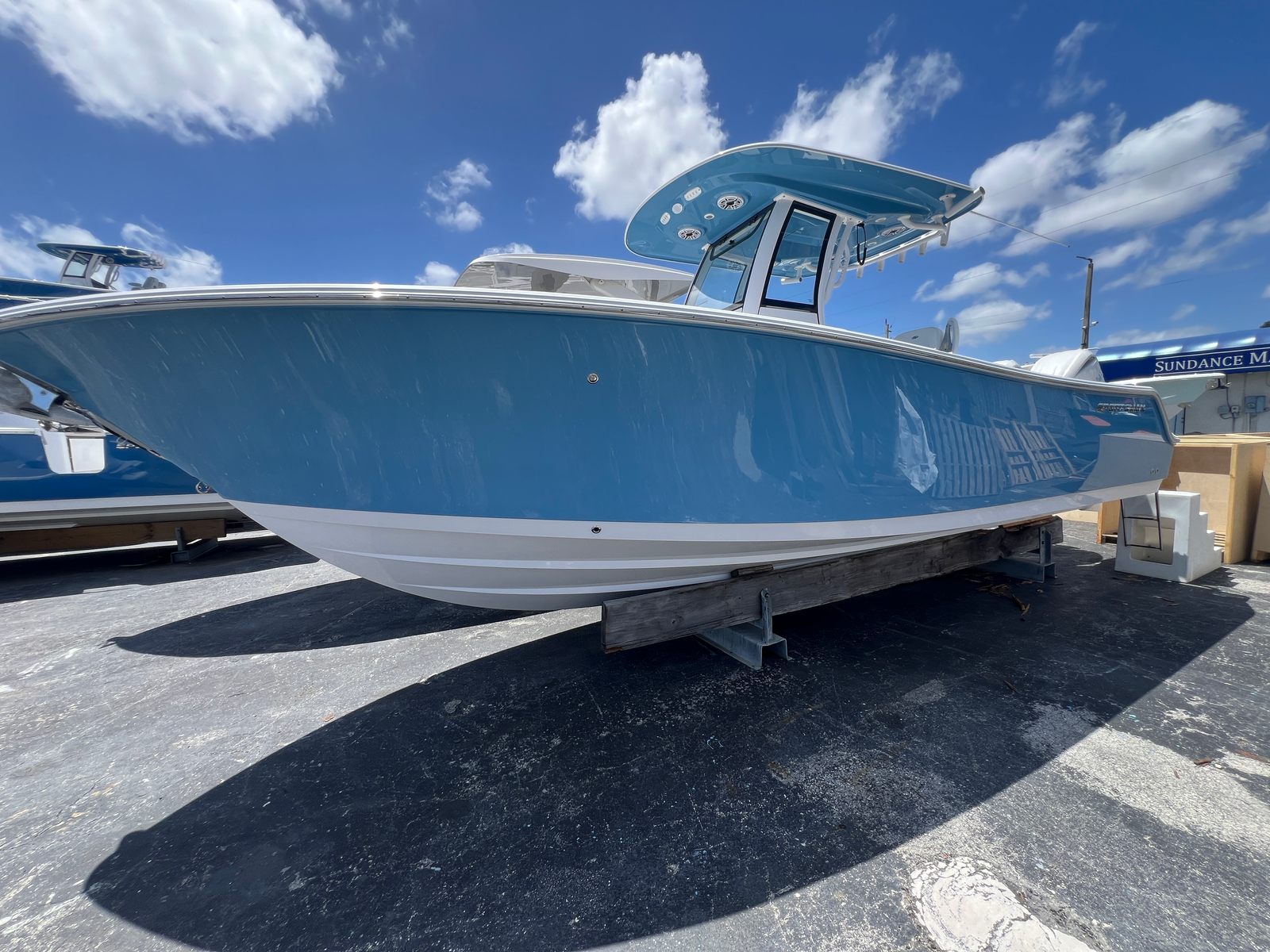 The 2026 Sportsman Open 252 stands out as a versatile and stylish Center Console boat, measuring an impressive 25.25 feet in length. Its sleek profile, highlighted by the Harbor Haze Blue hull sides and contrasting white hull bottom, ensures you will turn heads at the marina or out on open water. The new condition of this Sportsman boat for sale guarantees that you are investing in the latest advancements in marine technology and design, providing peace of mind and lasting value.