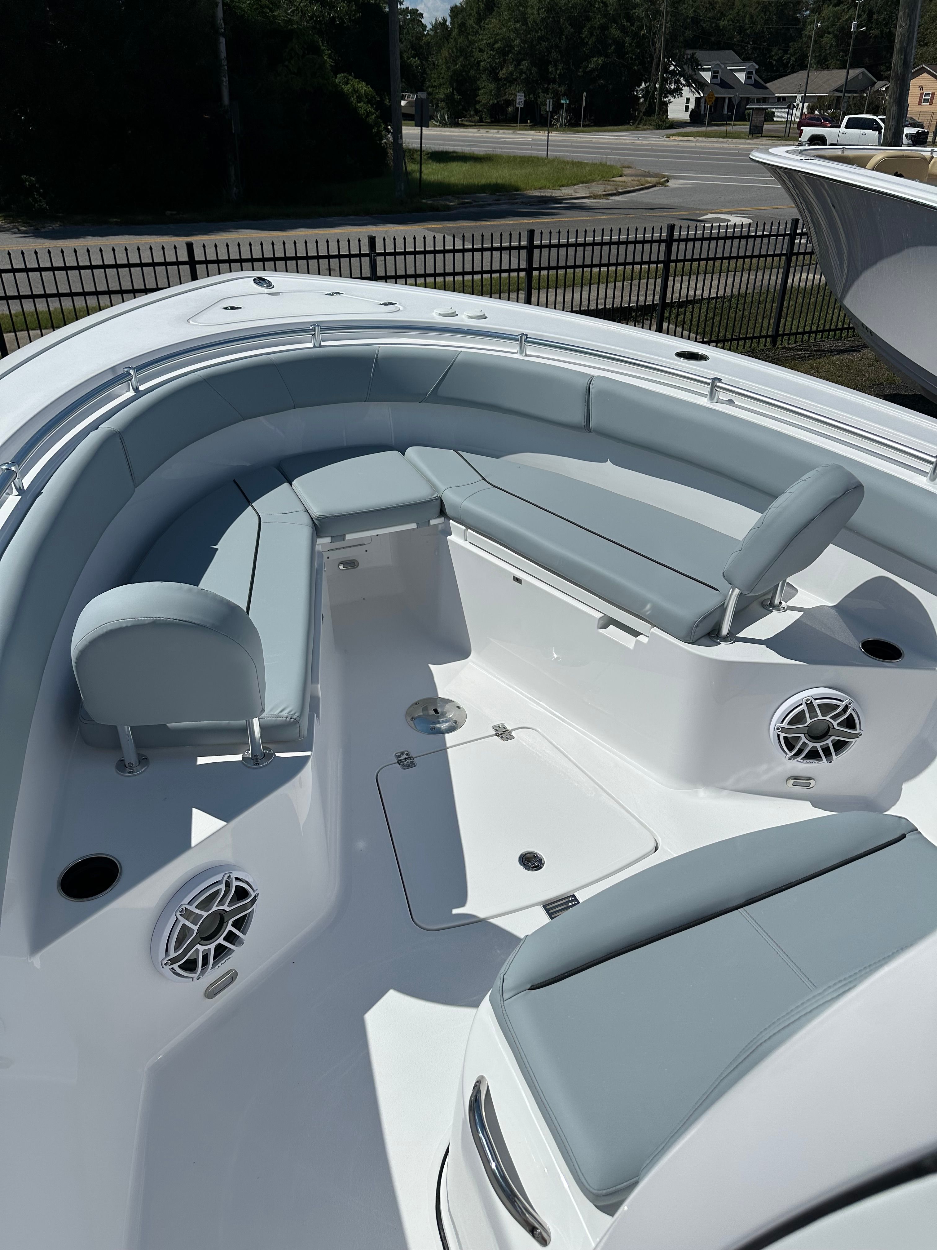 The Sportsman Open 252 is packed with premium features designed to elevate your boating experience. The Storm Cloud Gray hull and HardTop create a cohesive and eye-catching look, while the white powder coating adds durability and style. The Smokey Gray upholstery provides plush seating for you and your guests, ensuring comfort during long days on the water.One of the standout features is the removable Bow Sundeck/Table with Cushion, which transforms the bow area into a versatile space for sunbathing, dining, or socializing. The advanced Garmin Fusion®/JL Audio Ultra Premium DSP Upgrade delivers crystal-clear sound, allowing you to enjoy your favorite music with superior audio quality. Navigation is a breeze with the Garmin GPSMAP® 1243xsv 12" second screen, offering intuitive controls and real-time data to keep you on course.For added convenience, the porcelain head with overboard discharge and pump out ensures privacy and comfort during extended trips. These features make the Sportsman Open 252 a standout Center Console boat for sale, appealing to buyers who value luxury, technology, and practicality.
