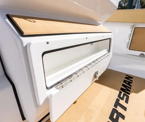 The Sportsman Open 262 is as practical as it is stylish. Its 26.5-foot length strikes the ideal balance between spaciousness and ease of handling, making docking and maneuvering a breeze even in crowded marinas. The integrated tackle storage and cooler seat enhance your fishing experience, while the hard top with LED lighting extends your boating hours into the evening. The durable construction and high-quality materials ensure longevity and low maintenance, allowing you to spend more time enjoying your boat and less time worrying about upkeep. Fuel efficiency is optimized by the advanced Mercury engines, helping you go further on every adventure.