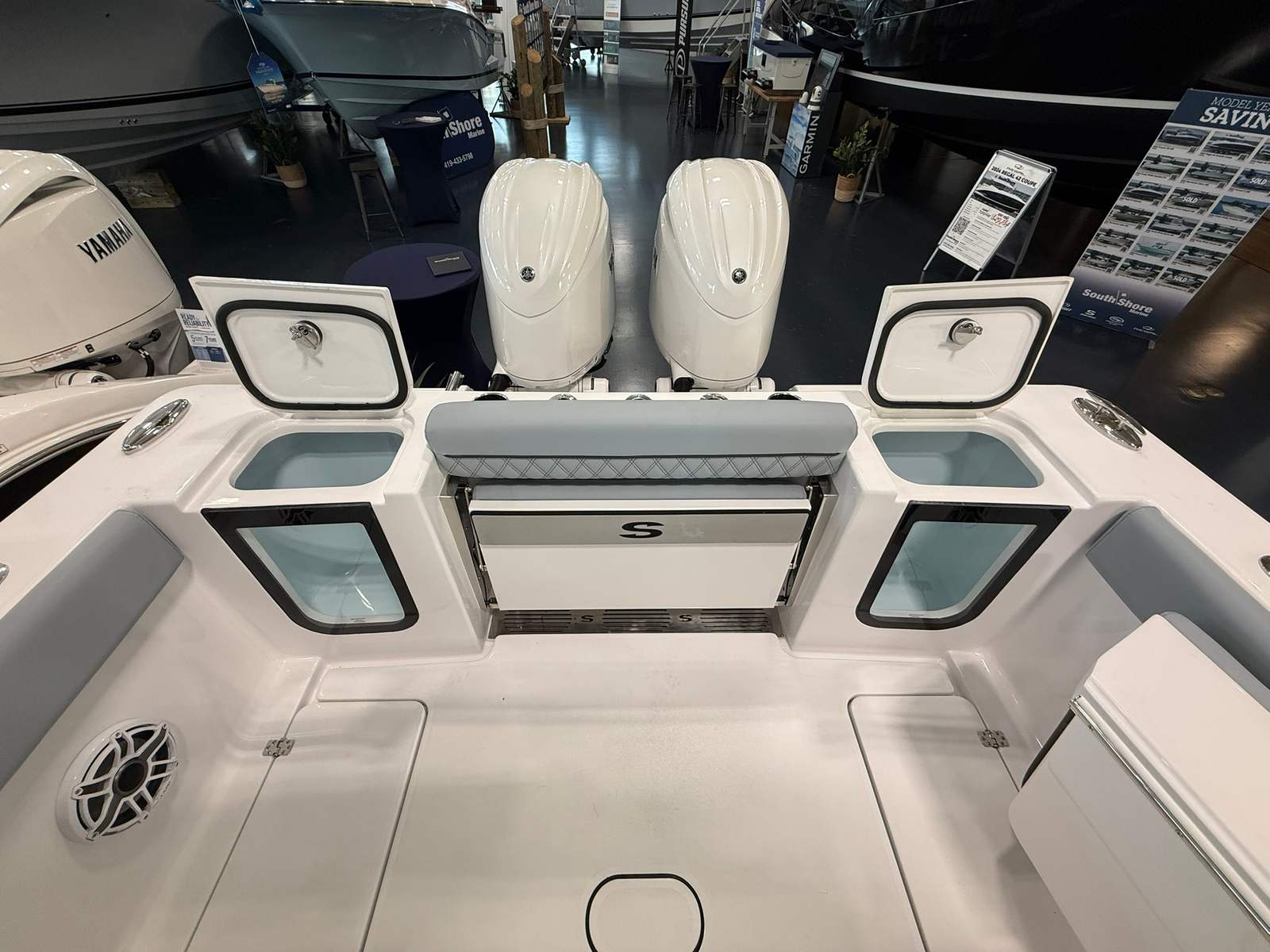 - Fiberglass Leaning Post w/ Dual Premium Chairs and Tackle Storage