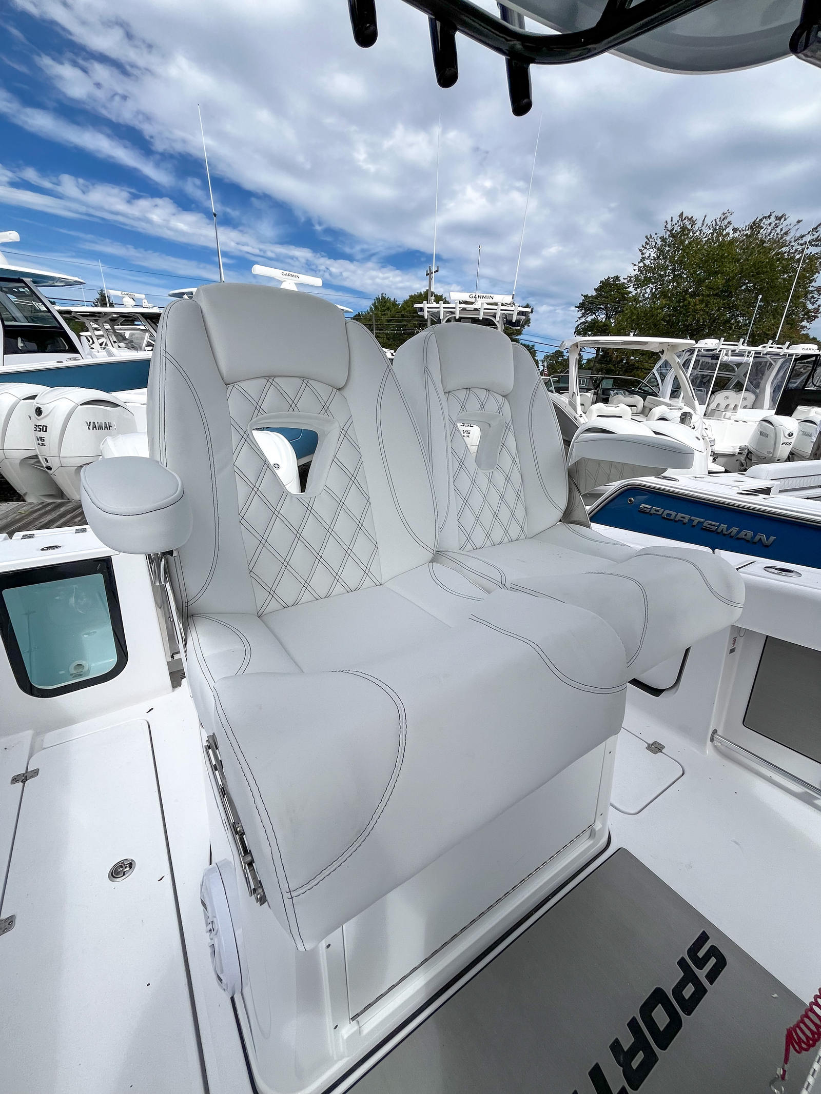 Step aboard the Sportsman Open 262 and discover a world of thoughtful features designed to maximize comfort, convenience, and enjoyment. The fiberglass console with FG liner and cooler seat provides a central command center, offering both functionality and a comfortable spot to relax. The fiberglass hard top with integrated LED lighting ensures you are ready for early morning launches or late-night returns, while the hardtop’s Storm Cloud Gray underside adds a custom touch. The Serenity Sileather Icecap White Upholstery offers a luxurious and durable seating experience, perfect for long days on the water. The fiberglass leaning post features dual premium chairs and ample tackle storage, making it easy to stay organized and comfortable during fishing trips or family outings. Navigation and connectivity are a breeze with two Garmin 12-inch GPS screens, complete with built-in Wi-Fi, ensuring you have all the information you need at your fingertips. The ProMariner ProTournament Elite 3 Battery Charger (4-Bank) keeps your systems powered and ready for action, so you can focus on enjoying your time on the water.