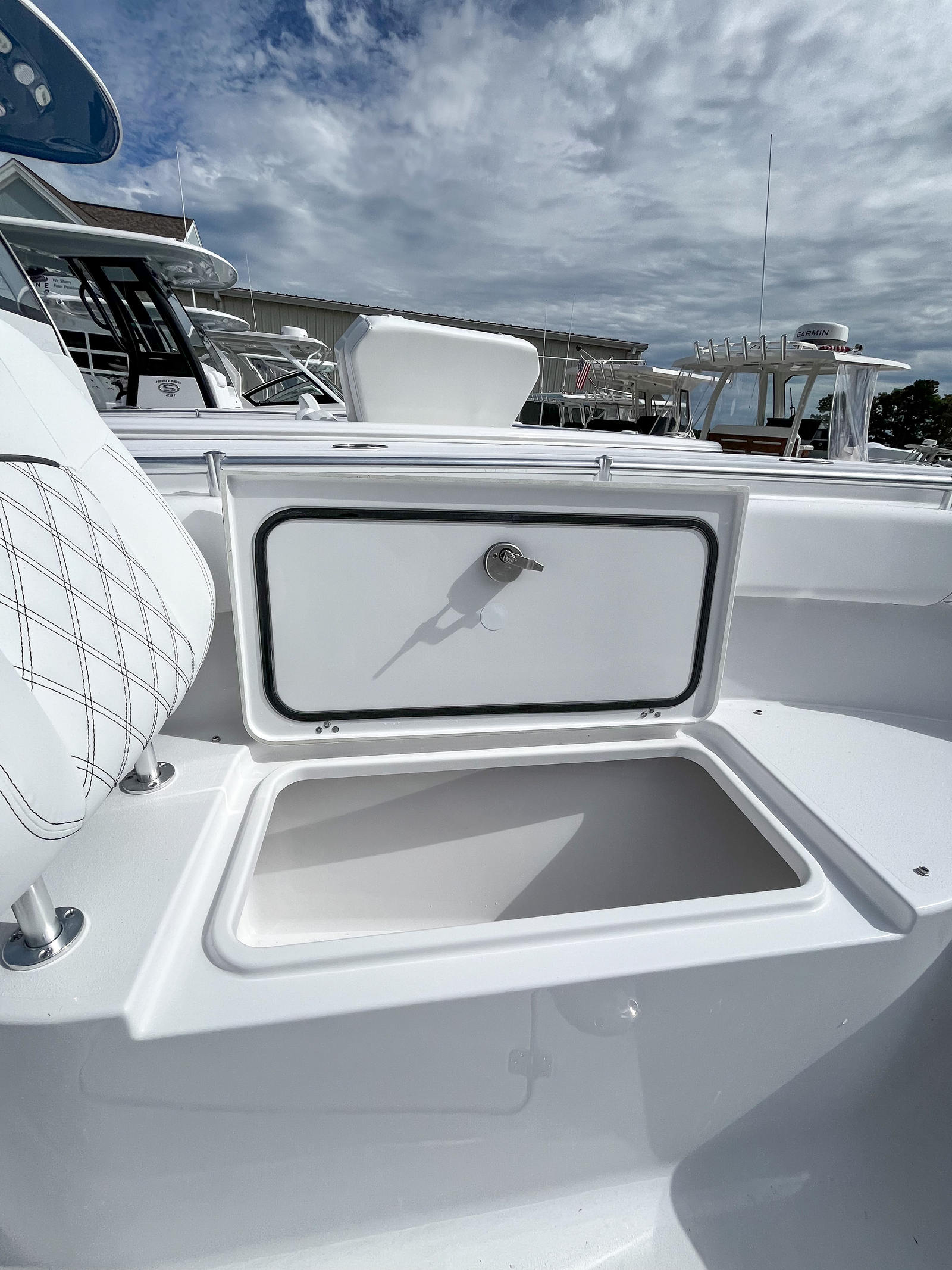- Fiberglass Leaning Post w/ Dual Premium Chairs andTackle Storage