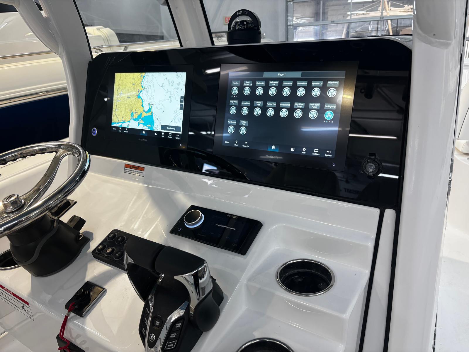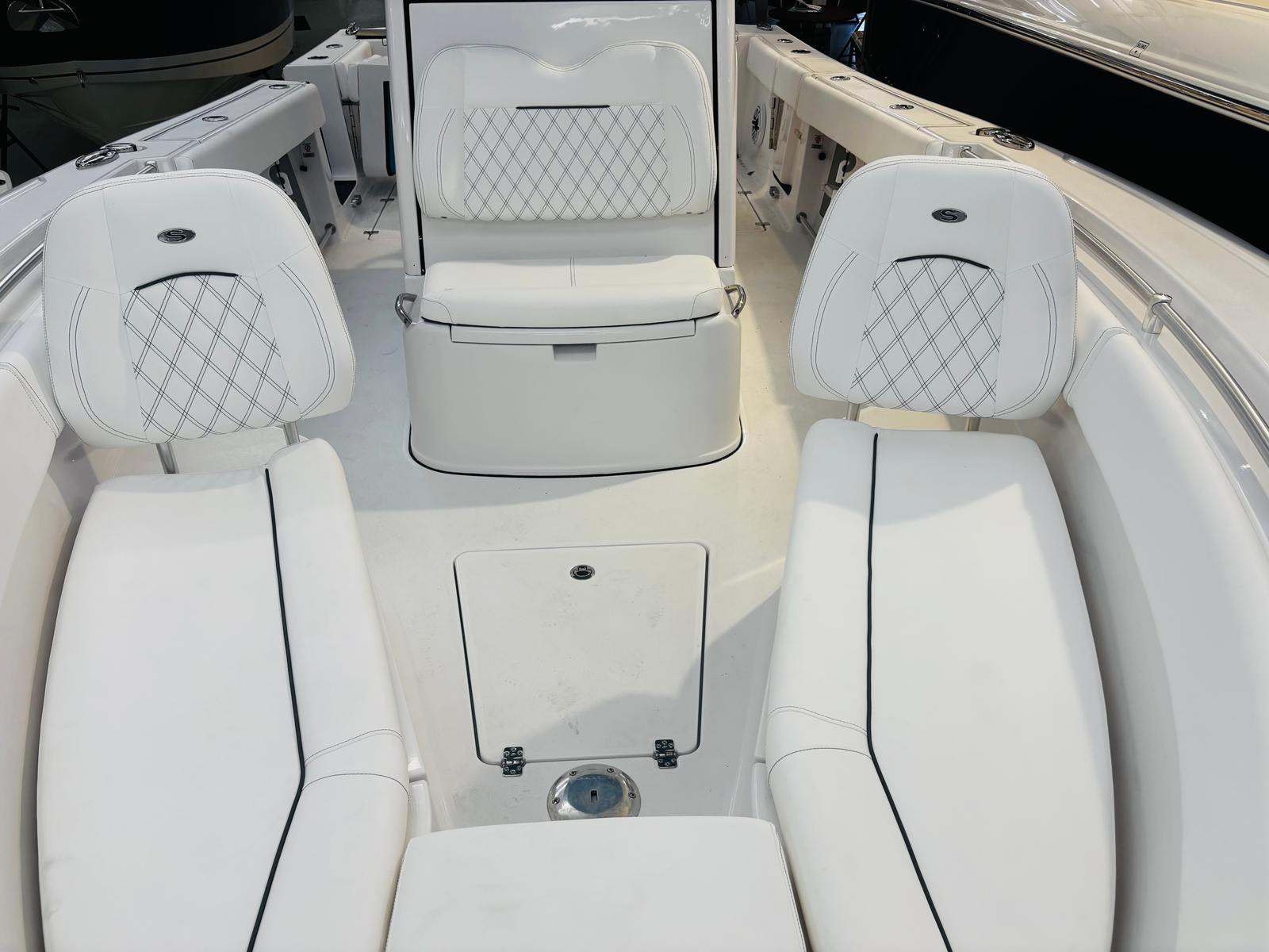 Owning the Sportsman Open 262 Center Console boat unlocks a world of fun and excitement. The spacious layout is designed for maximum comfort, with ample seating and open deck space that encourages social interaction and relaxation. The Icecap White upholstery not only looks fantastic but also provides a cool, comfortable surface for lounging on sunny days. The hardtop offers shade and protection from the elements, ensuring you can enjoy your time on the water regardless of the weather.The advanced steering system and powerful twin engines make this boat a joy to operate, whether you’re cruising along the coastline, heading out for a day of fishing, or exploring hidden coves. The Garmin radar system adds an extra layer of safety, giving you peace of mind during every journey.