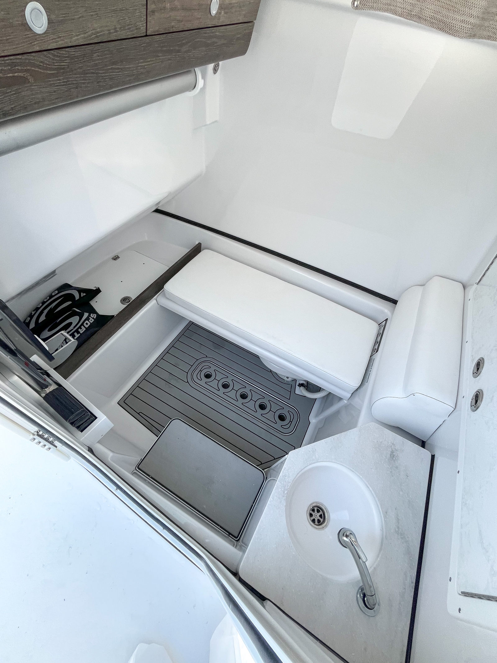 Powering the Sportsman Open 302 are two robust engines, delivering a combined 700 horsepower. This formidable setup provides the speed, agility, and reliability needed for offshore adventures, quick trips to your favorite fishing spot, or smooth cruising along the coast. The dual-engine configuration enhances maneuverability and control, giving you confidence in a variety of conditions. Whether you’re chasing the horizon or navigating tight harbors, the Sportsman Open 302’s performance is sure to impress.