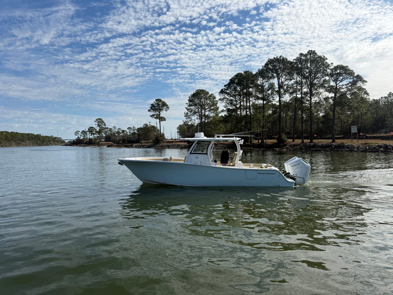 At the heart of the Sportsman Open 302 are twin Mercury 350 V10 AMS engines, finished in a striking white. With a combined 700 horsepower, this center console boat is built for exhilarating speed, smooth handling, and reliable performance in a variety of conditions. The advanced engineering of the Mercury V10 engines ensures responsive acceleration and efficient cruising, making it easy to reach your favorite destinations quickly and comfortably. Whether you are navigating coastal waters or heading offshore, the Open 302 delivers the power and agility you need for a confident and enjoyable ride.