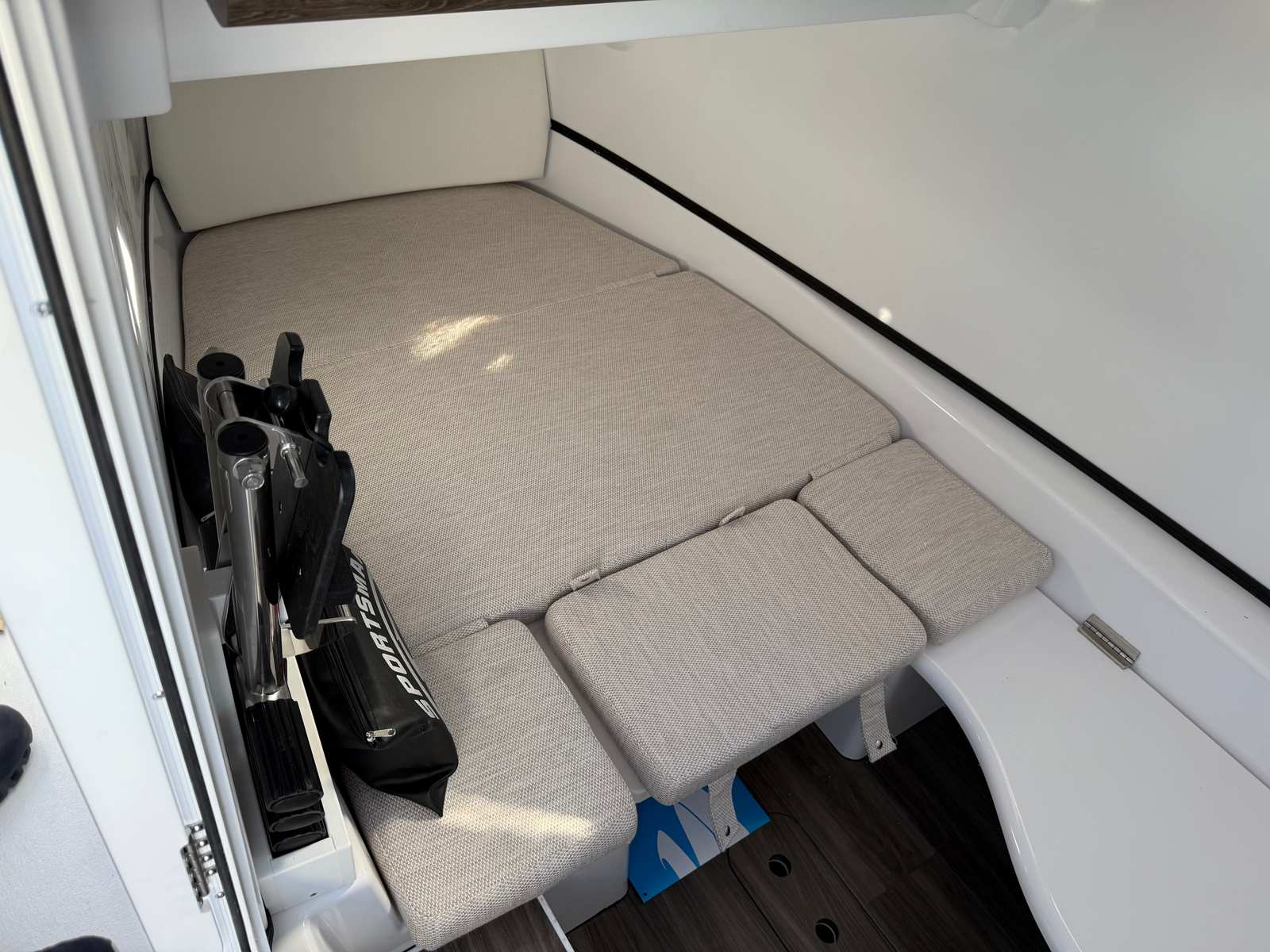 Owning the Sportsman Open 352 means embracing a lifestyle of fun, relaxation, and adventure. The spacious deck layout allows for easy movement and socializing, whether you’re hosting a group of friends or spending quality time with family. The advanced air conditioning system ensures everyone stays comfortable, while the Seakeeper stabilizer keeps the ride smooth and enjoyable. With electric reel outlets, anglers can pursue their passion with ease, and the Garmin weather antenna provides peace of mind by keeping you connected to vital information. The elegant finishes and plush upholstery create a welcoming environment, making every trip feel like a luxury getaway.