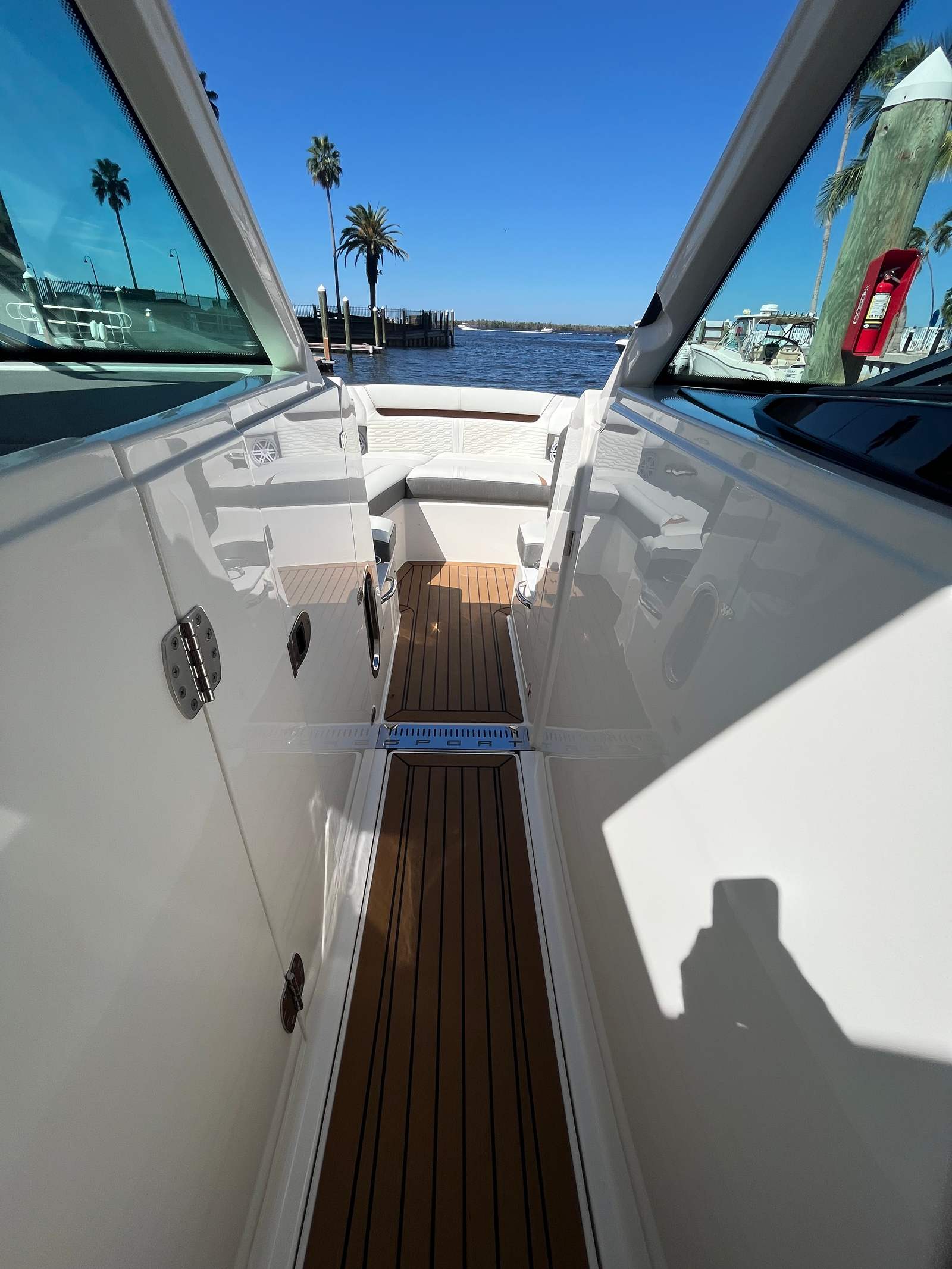 The Tiara Yachts 34 LX is packed with features that elevate your boating experience. Its spacious deck layout is designed for both relaxation and entertainment, with ample seating and open areas for socializing. The yacht’s premium materials and finishes reflect Tiara Yachts’ commitment to quality, ensuring durability and a luxurious feel throughout. The 34.75-foot length provides generous space for guests, while the thoughtful design maximizes comfort and convenience. Whether you are hosting a sunset cocktail party or enjoying a quiet afternoon on the water, this yacht boat for sale delivers the perfect setting.