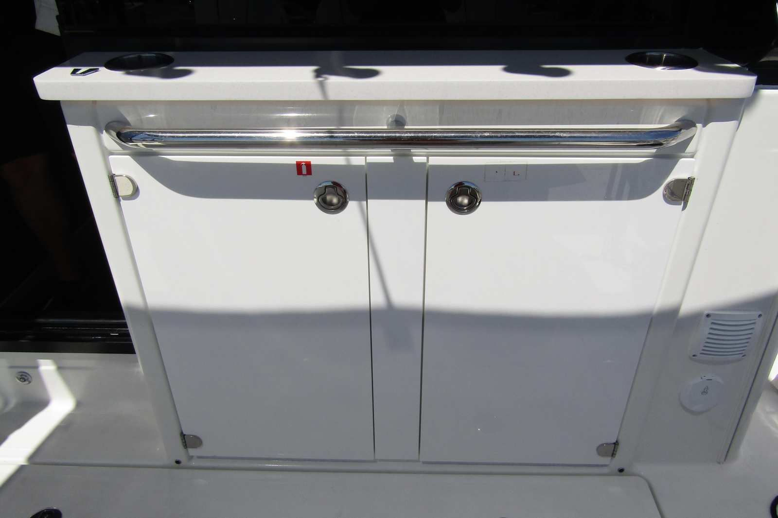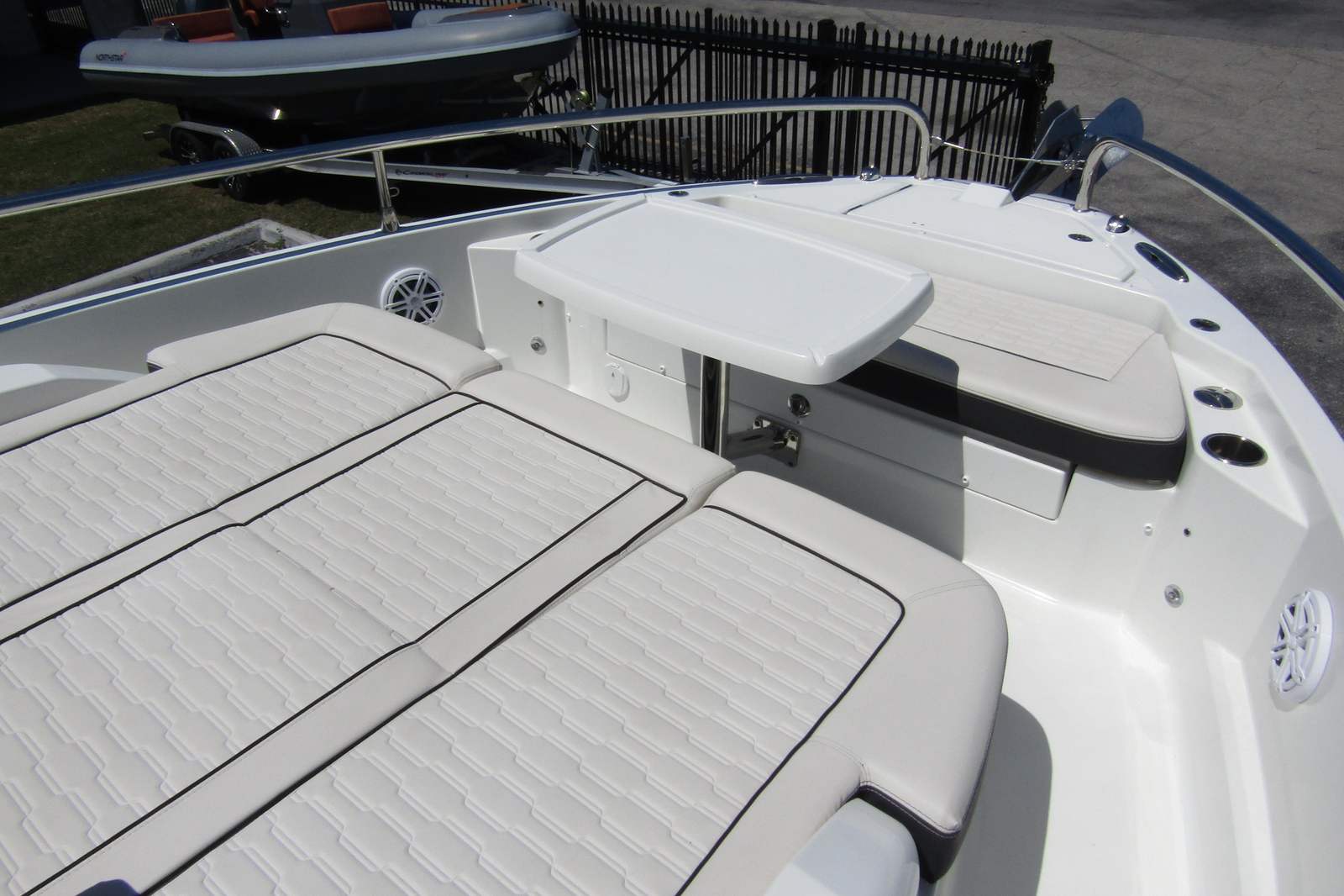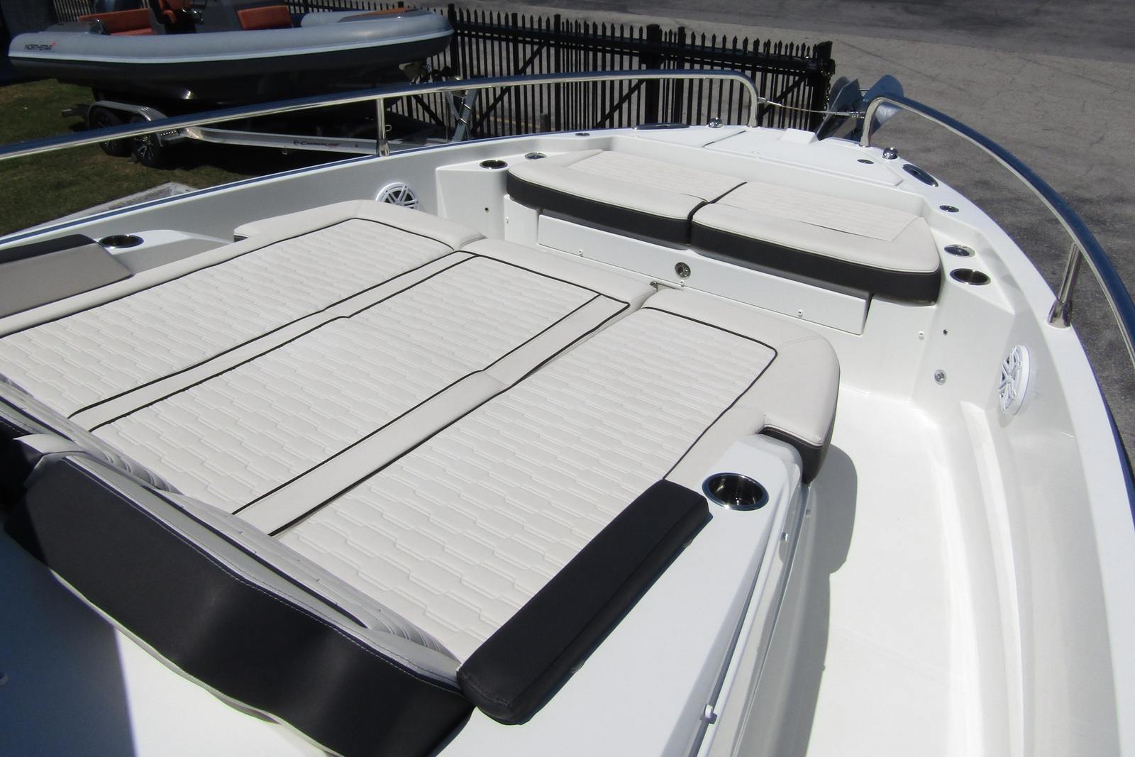 Inside, the spacious cabin is equipped for extended stays with a galley, private head/shower, comfortable berth, and premium finishes throughout. The advanced helm features dual Garmin displays, joystick control, and full digital integration for a seamless boating experience.