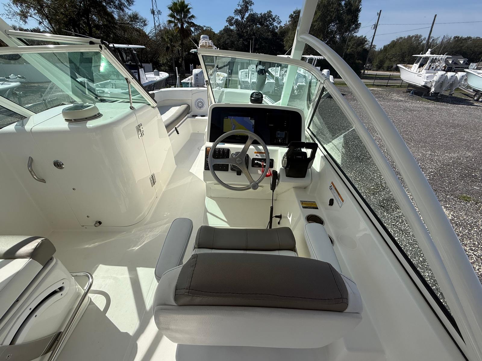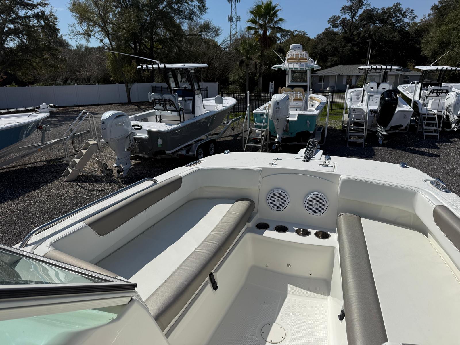 This 2023 World Cat 230 DC comes loaded with features that enhance both comfort and functionality. The dual console layout provides ample seating and protection from the elements, making it perfect for all-day excursions. The spacious cockpit is designed for socializing, with comfortable seating arrangements that invite relaxation and conversation. The helm is equipped with intuitive controls, ensuring that captains of all experience levels can navigate with confidence.The World Cat 230 DC’s 23-foot length provides generous deck space, allowing for easy movement and plenty of room for gear. The innovative catamaran hull not only improves ride quality but also increases usable space on board, making this World Cat boat for sale a practical choice for families and groups. Storage compartments are thoughtfully integrated throughout the boat, keeping your essentials organized and out of the way.